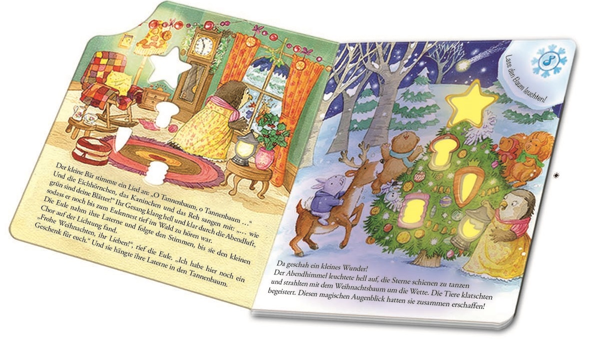 | Schlagworte | Bilderbuch (m. Soundeffekten) • Frühe Kindheit: Natur & Tiere • Frühe Kindheit: Natur & Tiere • Licht • Soundbuch • Tannenbaum • Tiere • Weihnachten • Weihnachten; Bilderbuch |
