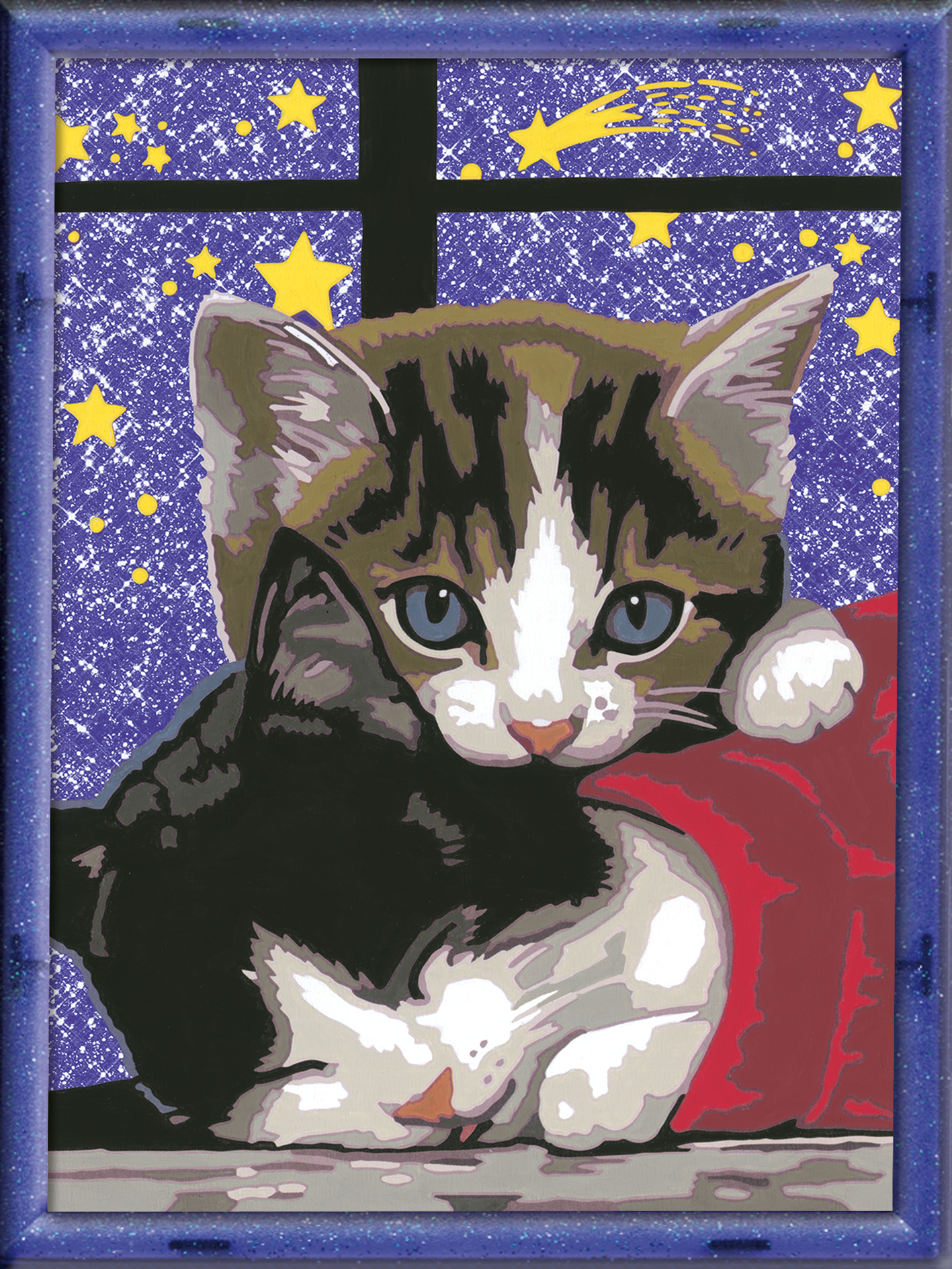 Jedes Malset enthält alles, was Künstler zum Malen brauchen und es ist kein Mischen der Farben notwendig. Zusätzlich zur Maltafel, zu den Farben und zum Pinsel, ist in diesem Malset funkelnder Glitter enthalten. Sobald das Motiv fertig ausgemalt ist, wird der Glitter angemischt und aufgetragen. So entsteht wird das Motiv zum Glitzern gebracht.