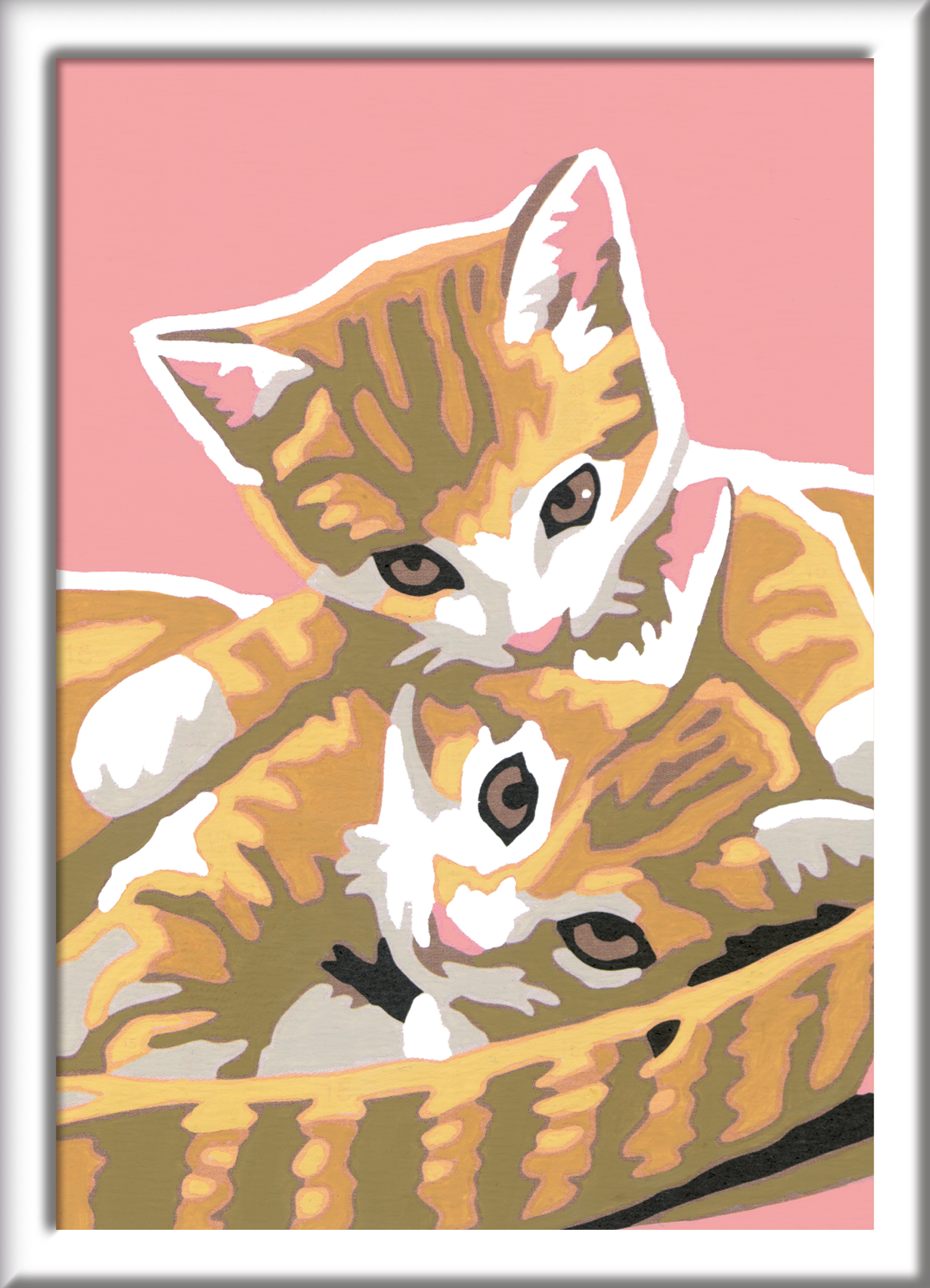 Dank der farbigen Motivlinien, können die Kinder das ganze Motiv Katzenbabys und die Farben schneller erkennen. Der Pinsel hat eine gute Führung und so entsteht ein perfektes Bild.