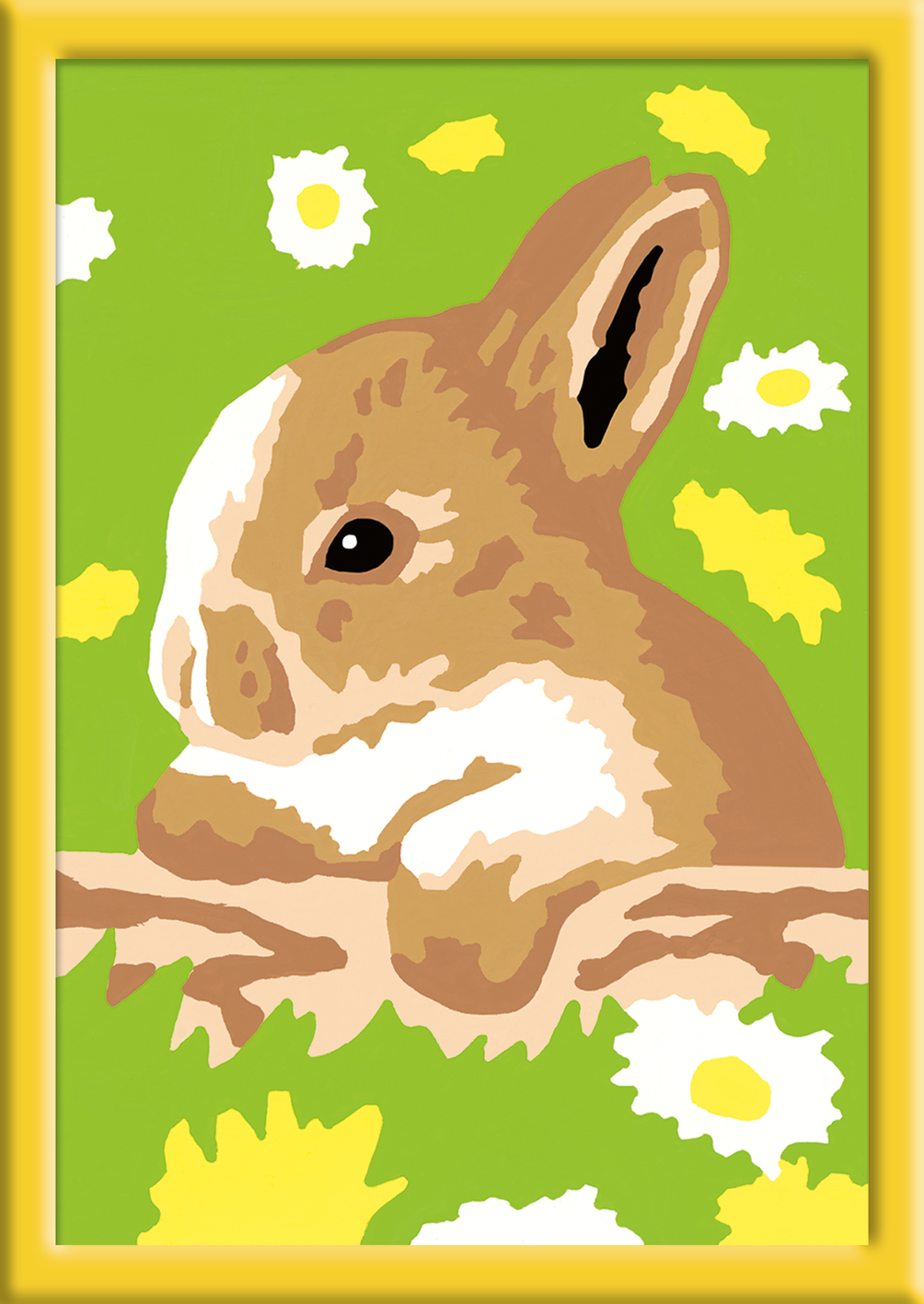 Dank der farbigen Motivlinien, können die Kinder das ganze Motiv Häschen Flecki und die Farben schneller erkennen. Der Pinsel hat eine gute Führung und so entsteht ein perfektes Bild.
