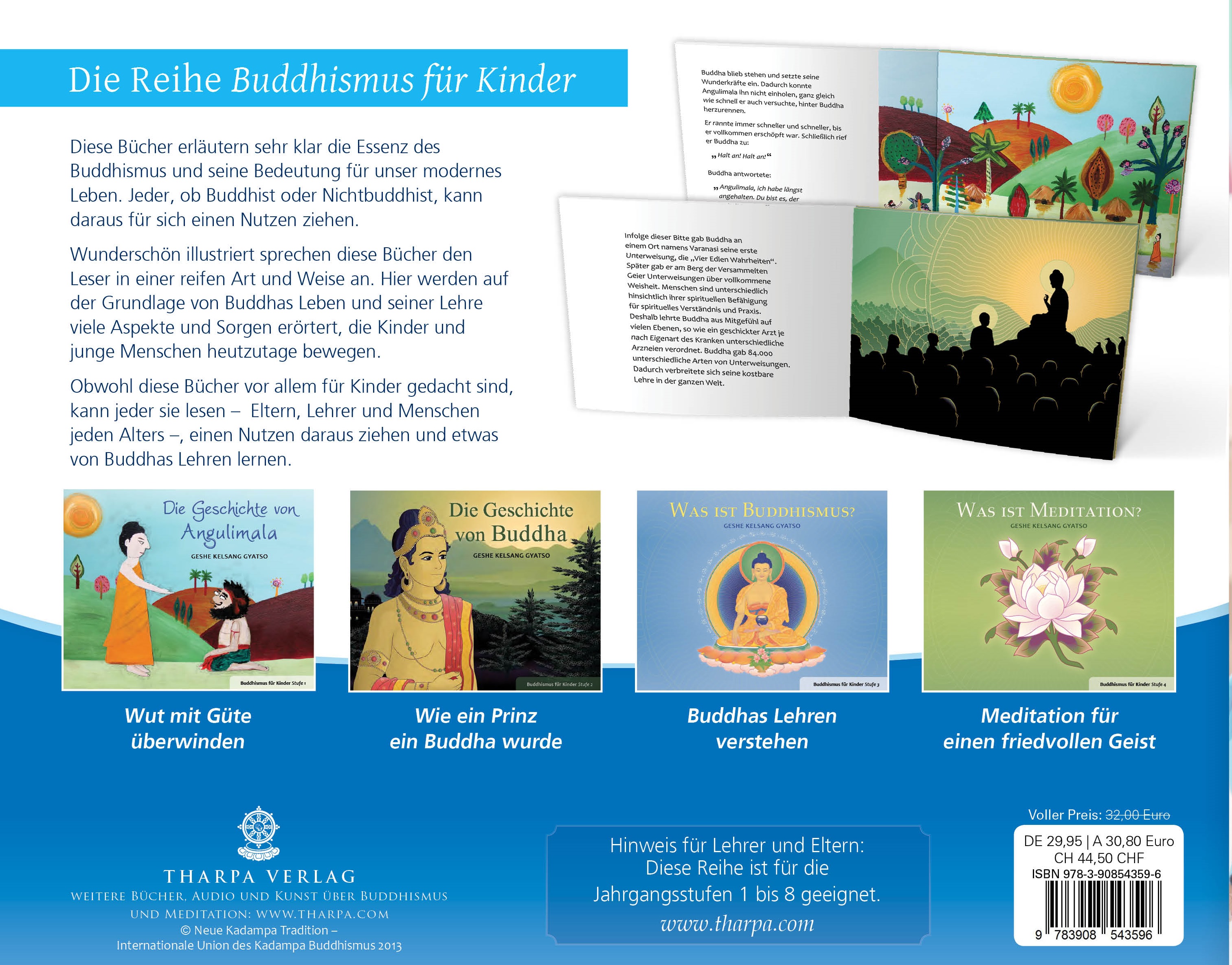 Diese Bücher erläutern sehr klar die Essenz des Buddhismus und seine Bedeutung für unser modernes Leben. Jeder, ob Buddhist oder Nichtbuddhist, kann daraus für sich einen Nutzen ziehen.Wunderschön illustriert sprechen diese Bücher den Leser in einer reifen Art und Weise an. Hier werden auf der Grundlage von Buddhas Leben und seiner Lehre viele Aspekte und Sorgen erörtert, die Kinder und junge Menschen heutzutage bewegen. Obwohl diese Bücher vor allem für Kinder gedacht sind, kann jeder sie lesen - Eltern, Lehrer und Menschen jeden Alters -, einen Nutzen daraus ziehen und etwas von Buddhas Lehren lernen.Die Reihe 'Buddhismus für Kinder' lädt Kinder auf eine Reise der Selbstfindung und Selbstentwicklung ein, damit sie ihr ganzes Potenzial verwirklichen können. Das Ziel ist nicht, Kinder zum Buddhismus zu bekehren. Es geht einfach darum zu zeigen, dass jedermann, ob Buddhist oder Nichtbuddhist, etwas aus Buddhas Unterweisungen lernen kann.Diese Bücher richten sich in einer altersgemäßen Weise an die Leser. Anhand des Lebens und der Lehren Buddhas werden viele Probleme und Sorgen angesprochen, mit denen Kinder heute konfrontiert sind Diese Bücher sind in erster Linie für Kinder geschrieben. Dennoch können sie für alle eine große Hilfe sein, die an einer klaren Darlegung der Essenz des Buddhismus und wie er im modernen Leben angewandt wird, interessiert sind.Enthalten sind:Buddhismus für Kinder, Stufe 1: 'Die Geschichte von Angulimala'Buddhismus für Kinder, Stufe 2: 'Die Geschichte von Buddha'Buddhismus für Kinder, Stufe 3: 'Was ist Buddhismus?'Buddhismus für Kinder, Stufe 4: 'Was ist Meditation?'