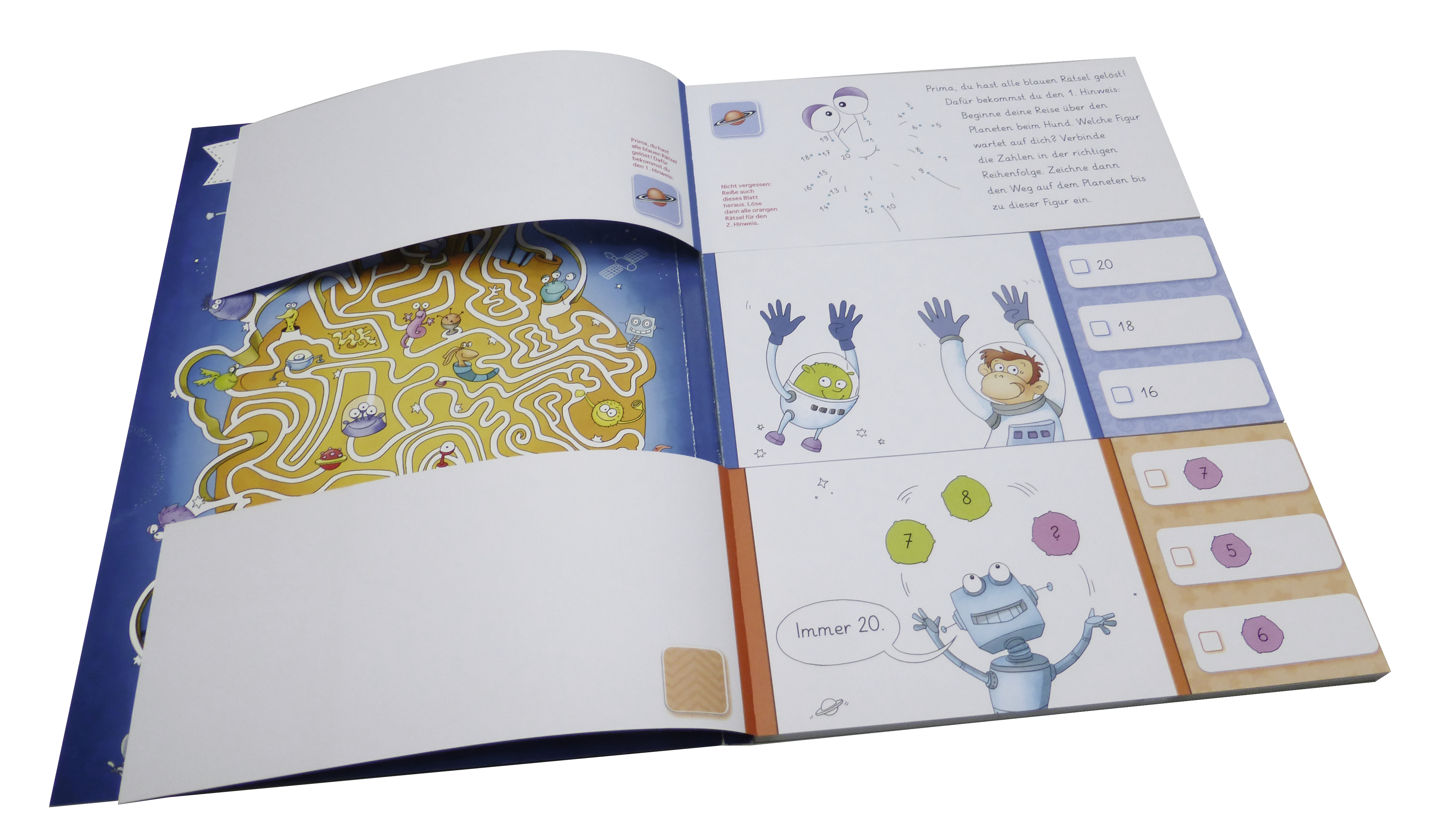 In über 100 Rechen-Rätseln geht's mit den verrückten Weltraum-Wesen quer durch den Zahlenraum bis 20. Und das Beste ist: Die Kinder können alles allein!
