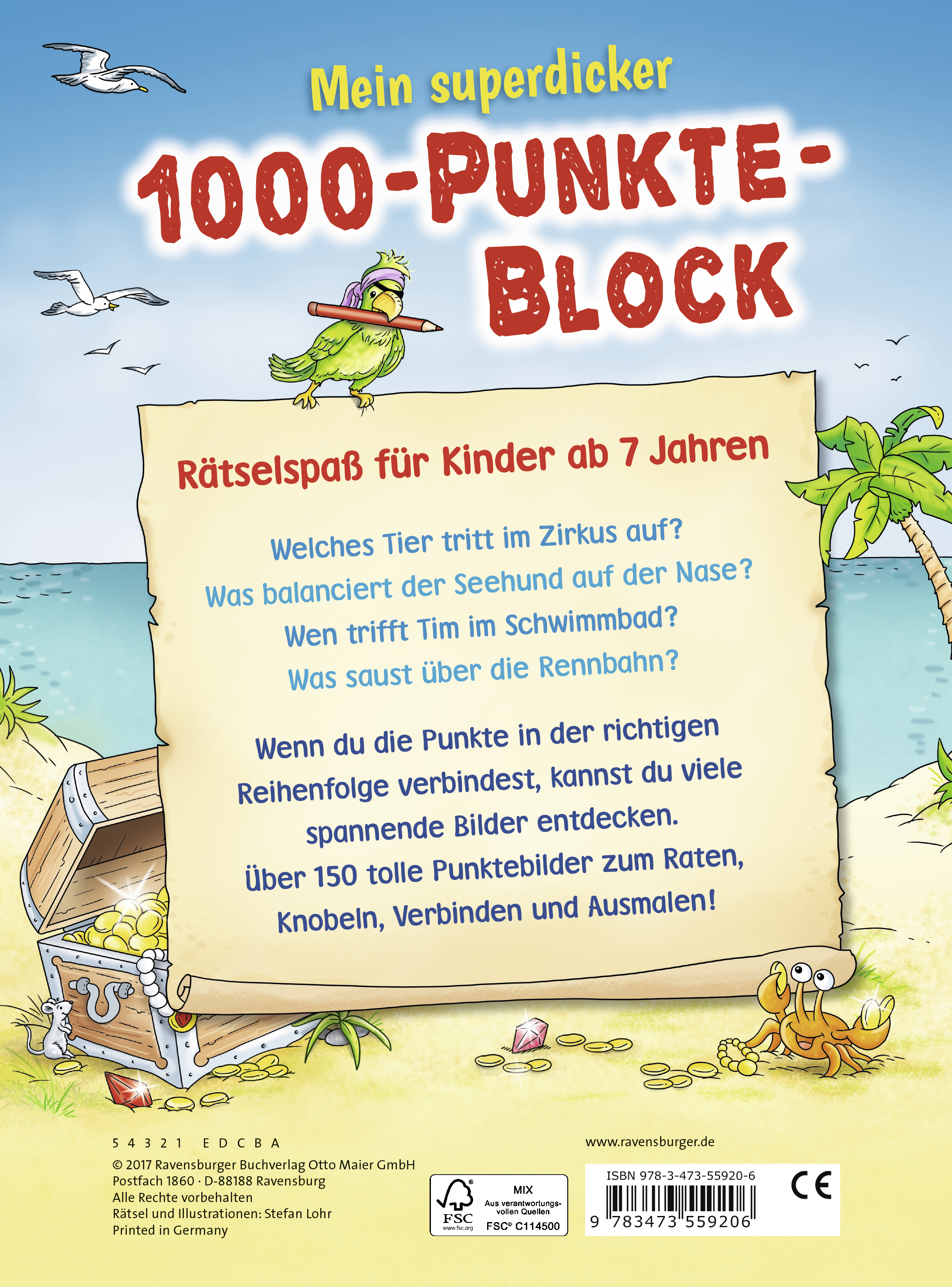| Schlagworte | Ausmalen • Beschäftigung • Geburtstagsgeschenk für Kinder • Geschenk für Kinder • Knobeln • Konzentration • Malbuch • Malen • Malheft • Mitbringsel • Punktebilder • Punktebilder; Papeterie • Punkterätsel • Raten • Rätsel • Rätsel f. Kinder/Jugendliche; Papeterie • Rätselheft • Ravensburger • Schultüte • Unterwegs • Von Punkt zu Punkt • Zahlen • Zählen • Zahlen lernen |