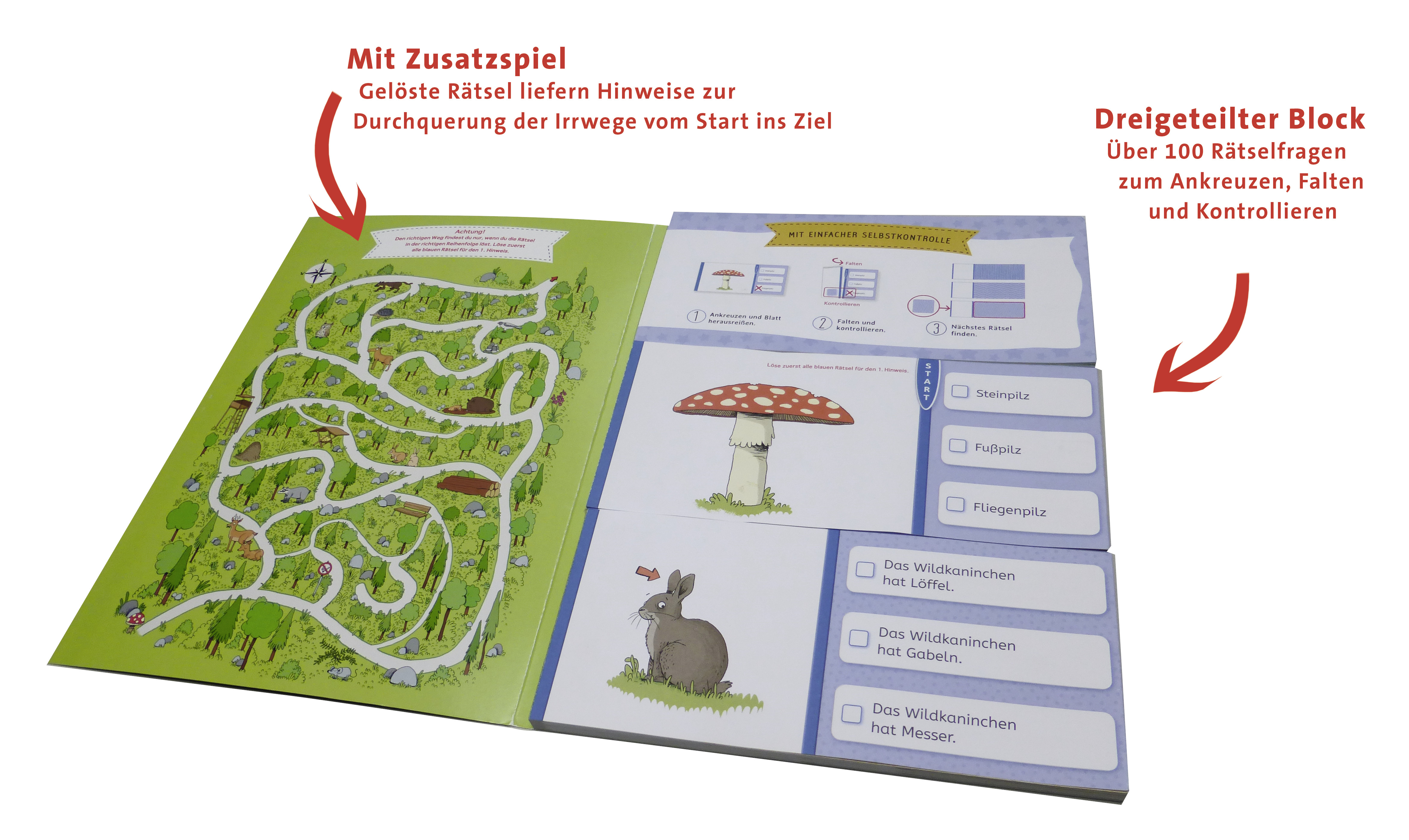 Hier ist altersgerechtes Sachwissen unterhaltsam wie noch nie! In über 100 witzigen Rätselfragen lernen die Kinder viele spannende Fakten aus dem Wald.