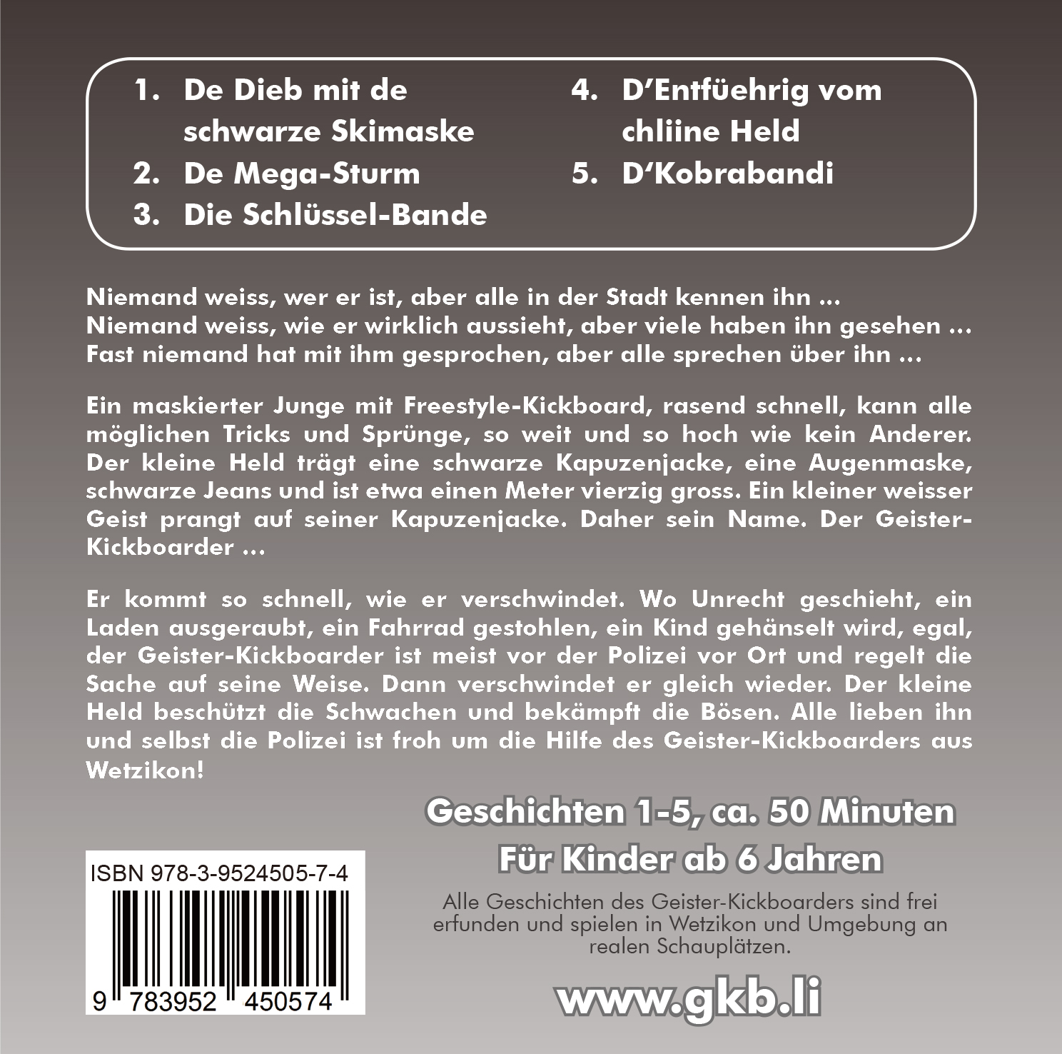 | Schlagworte | Geisterkickboarder • Geister-Kickboarder • Kinderbücher • Kinderhörbücher • Schweizerdeutsch • schwiizerdütsch • Stefan Baiker • Wetzikon |
