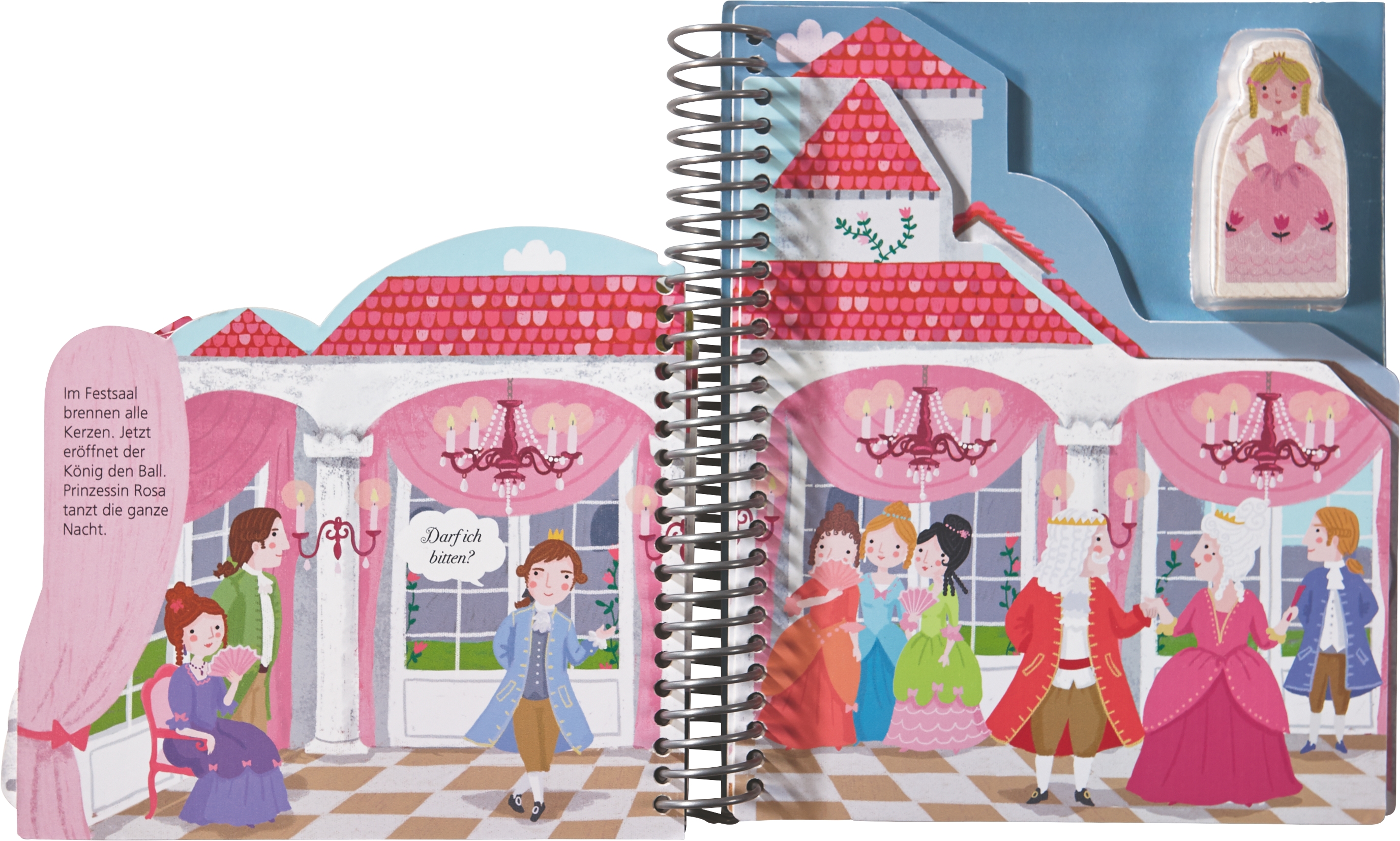 | Schlagworte | Festsaal • Holzfigur • König • Papp-Bilderbuch • Prinzessin; Bilderbuch • Prinzessin rosa • Tanzen |