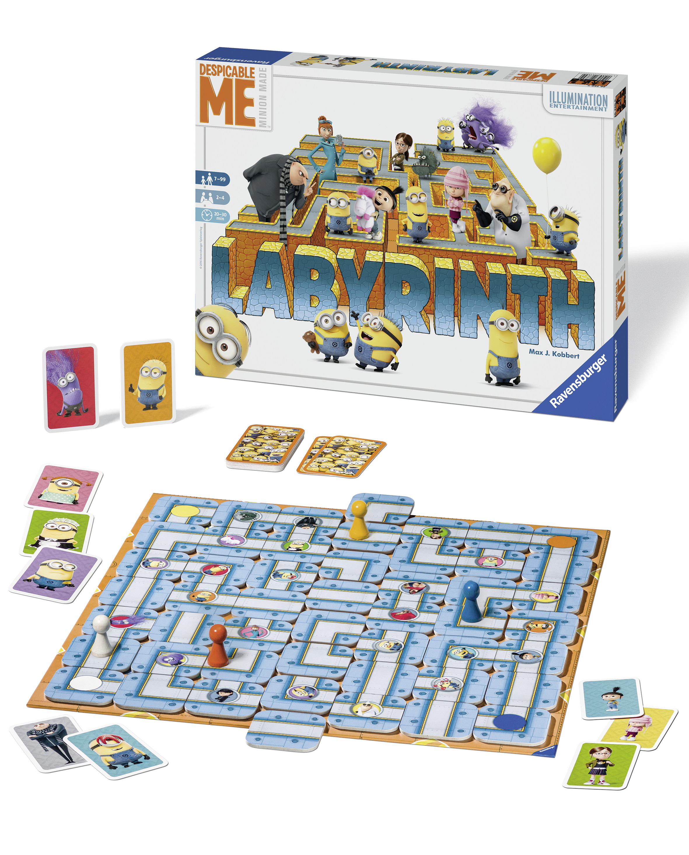 Der ehemalige Superschurke Gru, die lustigen gelben Minions und viele weitere „Ich einfach unverbesserlich“-Charaktere haben sich in den Gängen des Labyrinths versteckt und die Spieler machen sich auf die Suche nach ihnen. Dabei gilt es, die Wände geschickt zu verschieben, um sich neue Wege zu den gesuchten Filmhelden zu bahnen. Spiel-Inhalt: 1 Spielplan, 34 quadratische Wegekarten, 24 Bildkarten, 4 Spielfiguren. Spieleranzahl: 2-4. Spieldauer: 20-30 Min. Spieleanleitung in deutsch, spanisch, portugiesisch, französisch, italienisch, englisch.