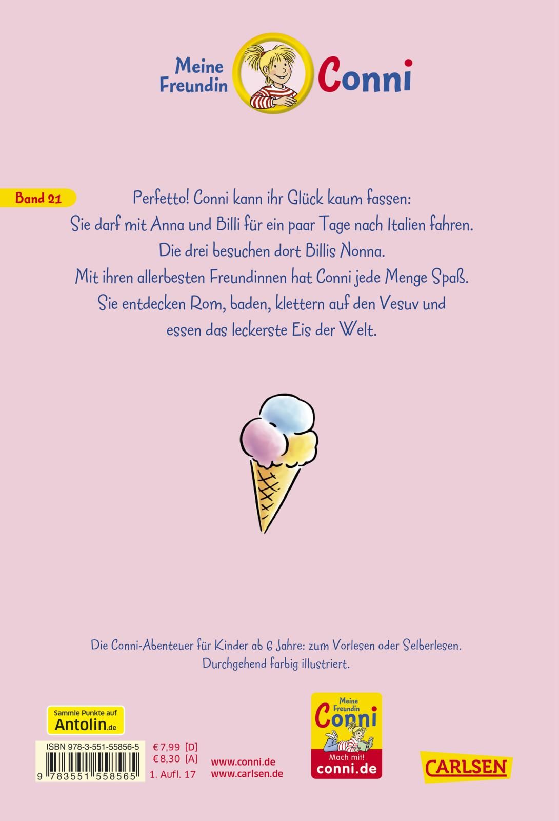 Conni kann ihr Glück kaum fassen! Sie darf mit Anna und Billi für ein paar Tage nach Italien fliegen. Die drei besuchen Billis Nonna. Gemeinsam mit ihren allerbesten Freundinnen entdeckt Conni Rom. Die Mädchen baden im Mittelmeer, klettern auf den Vesuv und essen das leckerste Eis der Welt. und finden: Das ist der beste Urlaub überhaupt!