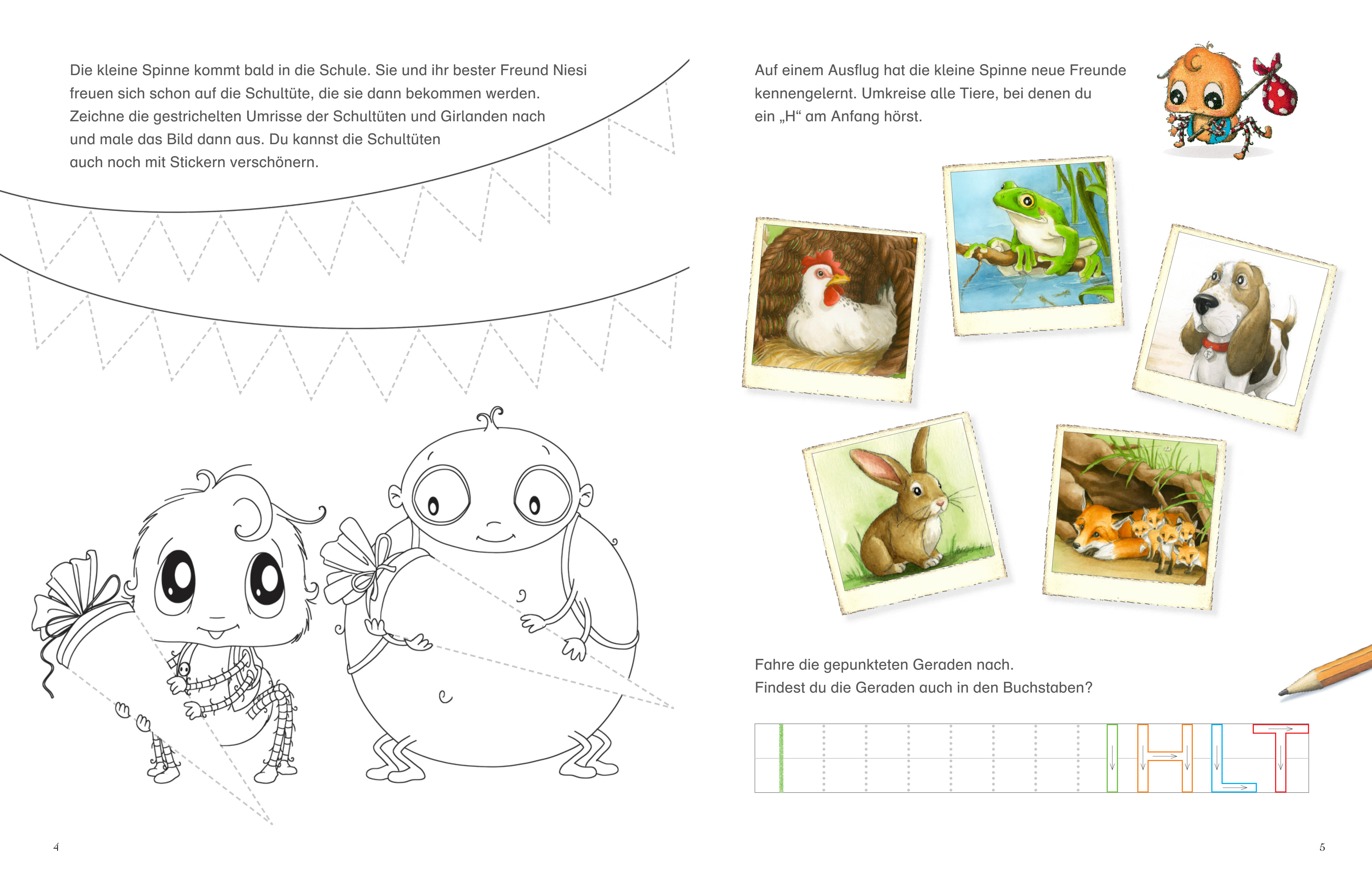 Großer Lernspaß mit der kleinen Spinne!In diesem liebevoll gestalteten Mitmachbuch finden Kinder spielerische Vorübungen zum Schreiben und Kennenlernen von ersten Buchstaben. Gemeinsam mit der beliebten kleinen Spinne können sie lustige Schwungübungen machen, Worträtsel lösen, Reimwörter finden und vieles mehr.Mit ABC-Würfelspiel - dem Spielspaß für die ganze Familie, und tollen Stickern als Extra