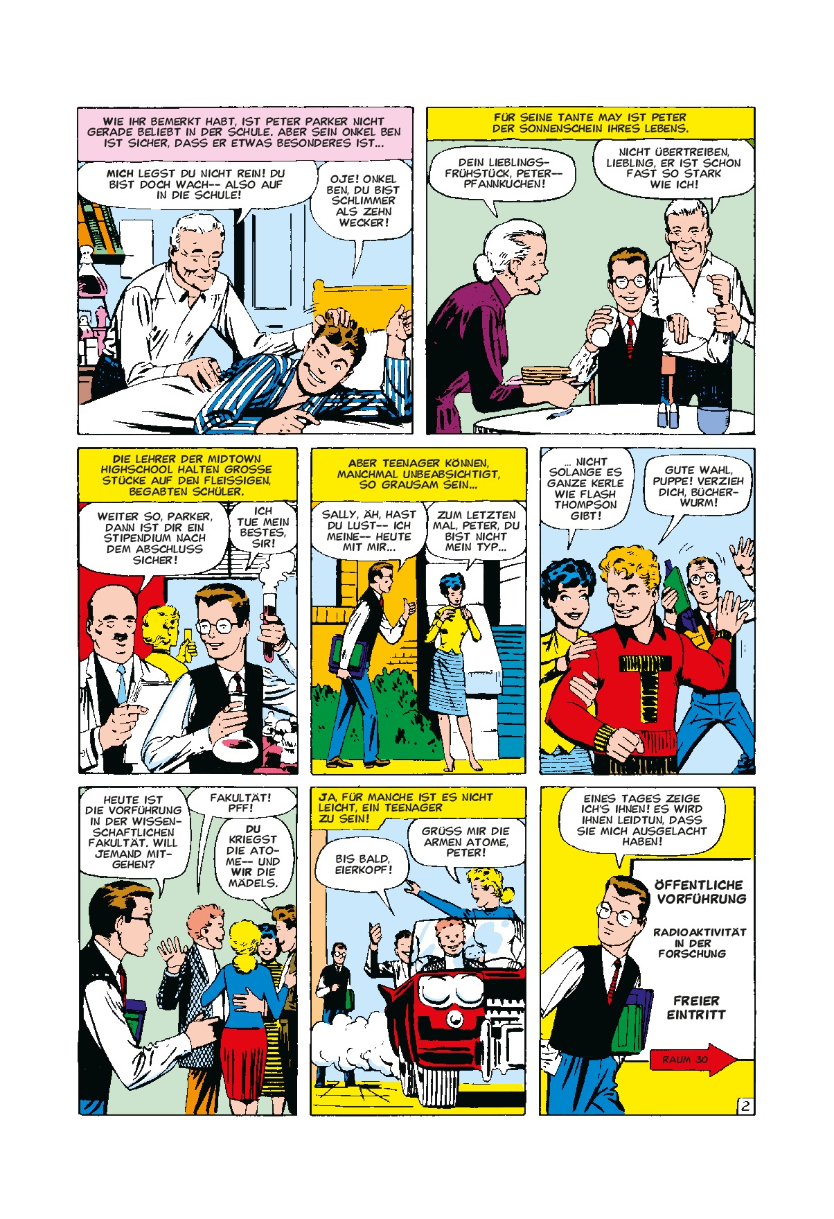 WILLKOMMEN IM NETZ VON SPIDER-MAN von Christian Endres Spider-Man Peter Parker ist einer der beliebtesten Superhelden aller Zeiten, dessen Popularität bis weit über die Grenzen der Marvel-Comics hinausreicht. Dieser Best-of-Band, den es in der vorliegenden Zusammenstellung nur auf Deutsch gibt, präsentiert einige der besten Spidey-Abenteuer, die jemals geschrieben und gezeichnet wurden. Jede Geschichte dieser Anthologie stellt ein Highlight des grafi schen Erzählens und einen Meilenstein der Spider-Man-Historie dar – viele der folgenden Storys sind sogar ein echtes Stück Comic-Geschichte! Es warten klassische, zeitlos packende Episoden aus den prägenden 60ern und 70ern, die den Grundstein für Spider-Mans andauernden Erfolg legten, intensive Meisterwerke aus den revolutionären 80ern sowie einige der größten Storys aus den aufregenden Epochen vor und nach dem Jahrtausendwechsel. Jedes Kapitel steht für eine Superhelden-Seifenoper, die seit über einem halben Jahrhundert denkwürdige Schlachten gegen Schurken, ganz besondere Augenblicke, ergreifende Tragödien, bittere Rückschläge und wunderbare Triumphe generiert. [...]