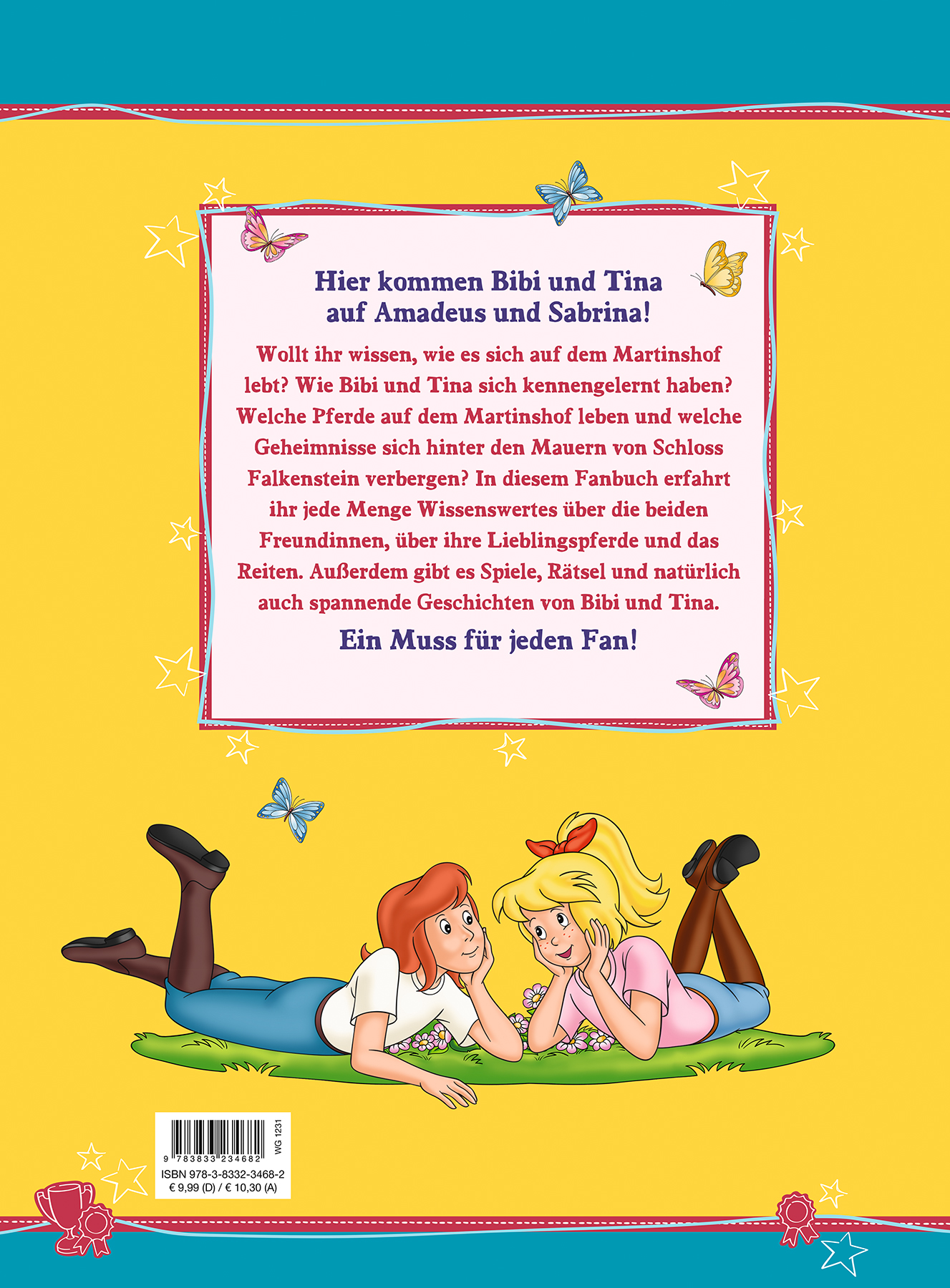 Hier kommen Bibi und Tinaauf Amadeus und Sabrina!Wollt ihr wissen, wie es sich auf dem Martinshof lebt? Wie Bibi und Tina sich kennengelernt haben? Welche Pferde auf dem Martinshof leben und welche Geheimnisse sich hinter den Mauern von Schloss Falkenstein verbergen? In diesem Fanbuch erfahrt ihr jede Menge Wissenswertes über die beiden Freundinnen, über ihre Lieblingspferde und das Reiten. Außerdem gibt es Spiele, Rätsel und natürlich auch spannende Geschichten von Bibi und Tina.Ein Muss für jeden Fan!In diesem farbenfrohen Buch erfahren die Fans der Serie alles, was sie über ihre Lieblinge wissen wollen. Die wichtigsten Figuren und Orte werden vorgestellt, und es gibt jede Menge Sachinformationen über Pferde. Darüber hinaus enthält das Buch Geschichten, Spiel- und Bastelideen rund um den Martinshof und seine Bewohner, und ist somit ein absolutes Muss für jeden Bibi & Tina-Fan.