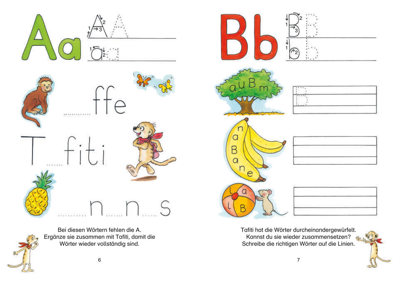 Den beliebten Character Tafiti gibt es jetzt auch im Lernhilfebereich! Zusammen mit dem Erdmännchen Tafiti lernen Schulanfänger ab 6 Jahren das Schreiben. Mit farbigen Rätseln und abwechslungsreichen Aufgaben.