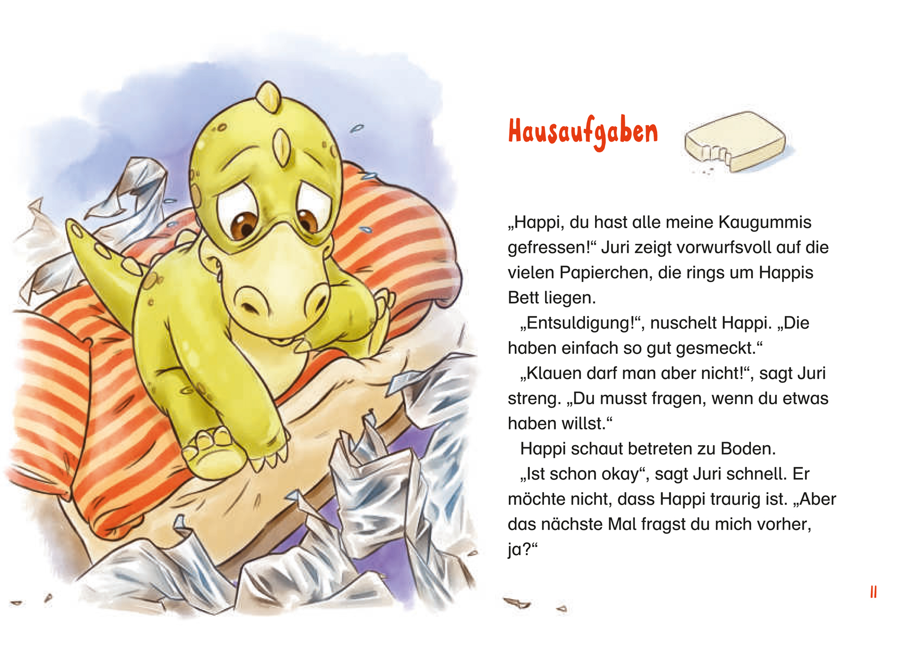 Dinosaurier sind ausgestorben? Falsch gedacht! Drei kleine Dinos wohnen in Juris Kinderzimmer und machen jede Menge Quatsch!
