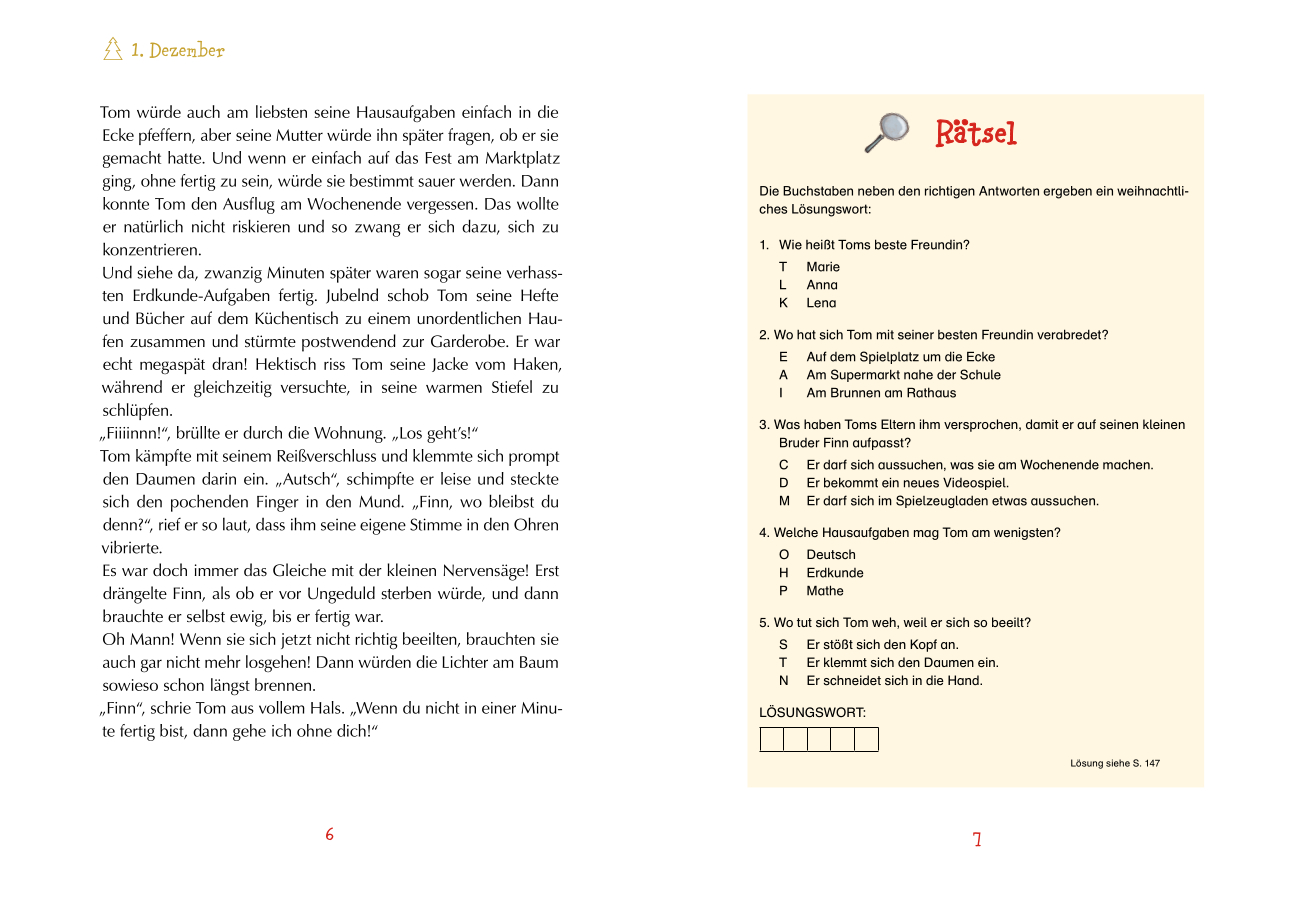 - Außerdem wird zu jedem Abschnitt eine Rätselfrage an die kleinen Leser gestellt - hier kann jeden Tag im Advent mitgeknobelt werden!