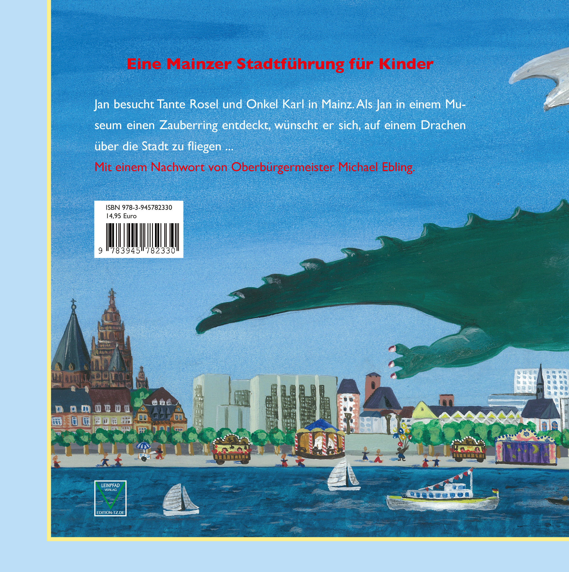 | Schlagworte | Bilderbücher mit Erzähltexten • Drache • Fantasie • Gisela Cölle • Gutenberg-Museum • Johannisfest • Mainz • Mainz; Kindersachbuch/Jugendsachbuch • Mainz; Reiseführer • Michael Ebling • Phantasie • Rheinland-Pfalz • Römersteine • Zitadelle |