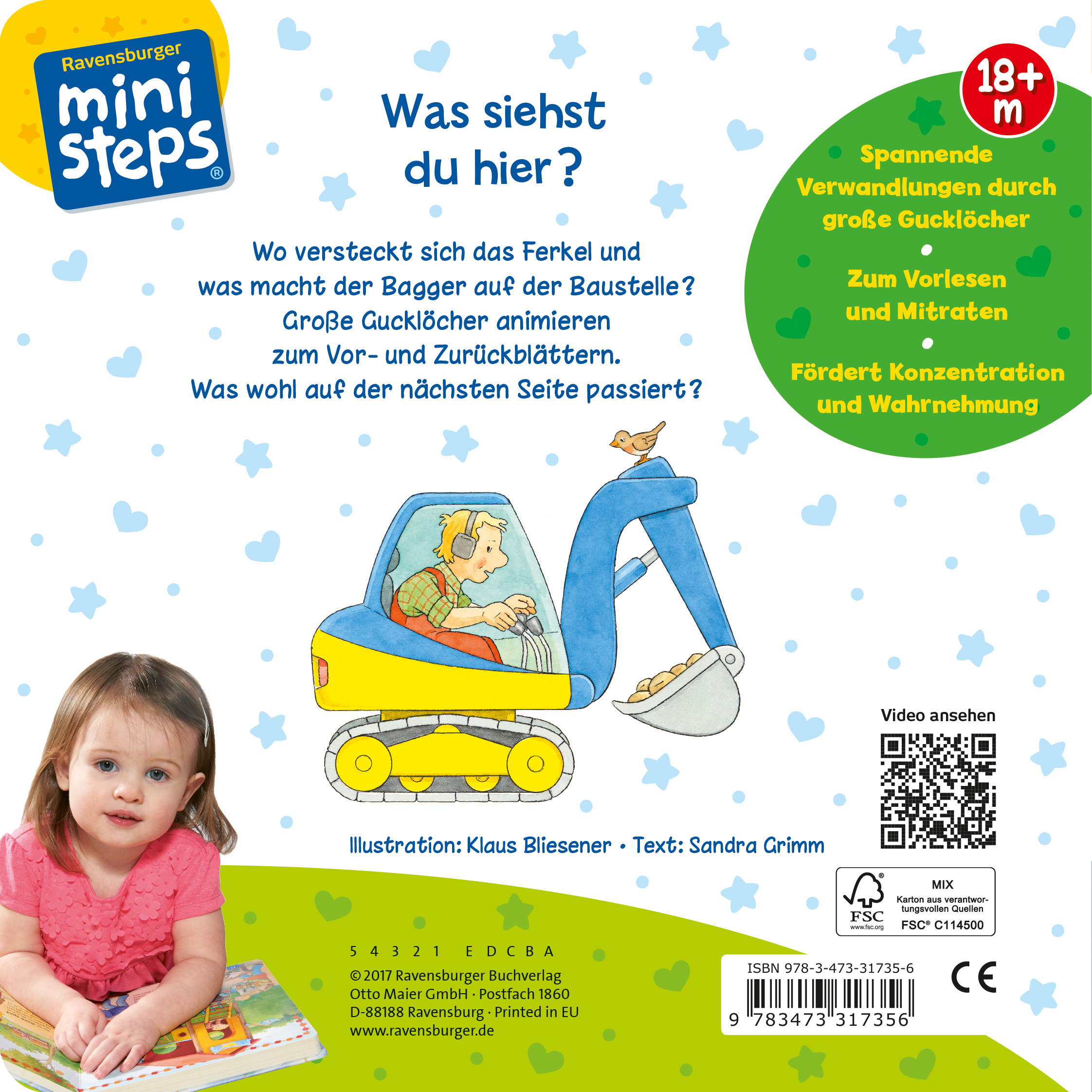 | Schlagworte | Baby-Buch • Bauernhof-Tiere • Baustelle • Entdecken und erleben • Fein-Motorik • Feuerwehr • Gucklöcher • Kinder-Alltag • Klein-Kind • Lieblings-Tiere • ministeps • Papp-Bilderbuch • Spiel-Buch • Spielen • Sprach-Erwerb • Sprach-Förderung • Sprechen lernen • Stadt • Tastsinn • Vorlesen |