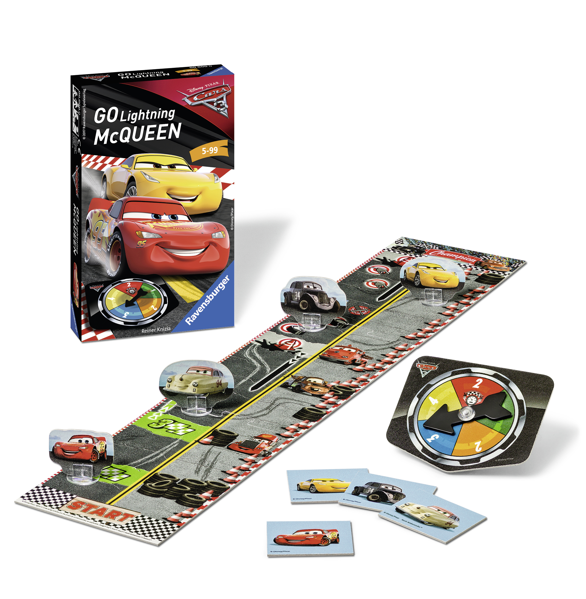 Die beiden Renn-Legenden River Scott und Louise Nash sowie Cruz Ramirez trainieren mit Lightning McQueen für die neue Renn-Saison. Mit viel Glück und etwas Taktik können die Spieler McQueen und seine ps-starken Freunde beim Training unterstützen. Spiel-Inhalt: 4 Spielfiguren, 1 Spinner, 4 Kärtchen, 1 Spielplan. Spieleranzahl: 2-4. Spieldauer: 15-20 Min. Spieleanleitung in deutsch, niederländisch, französisch, italienisch.