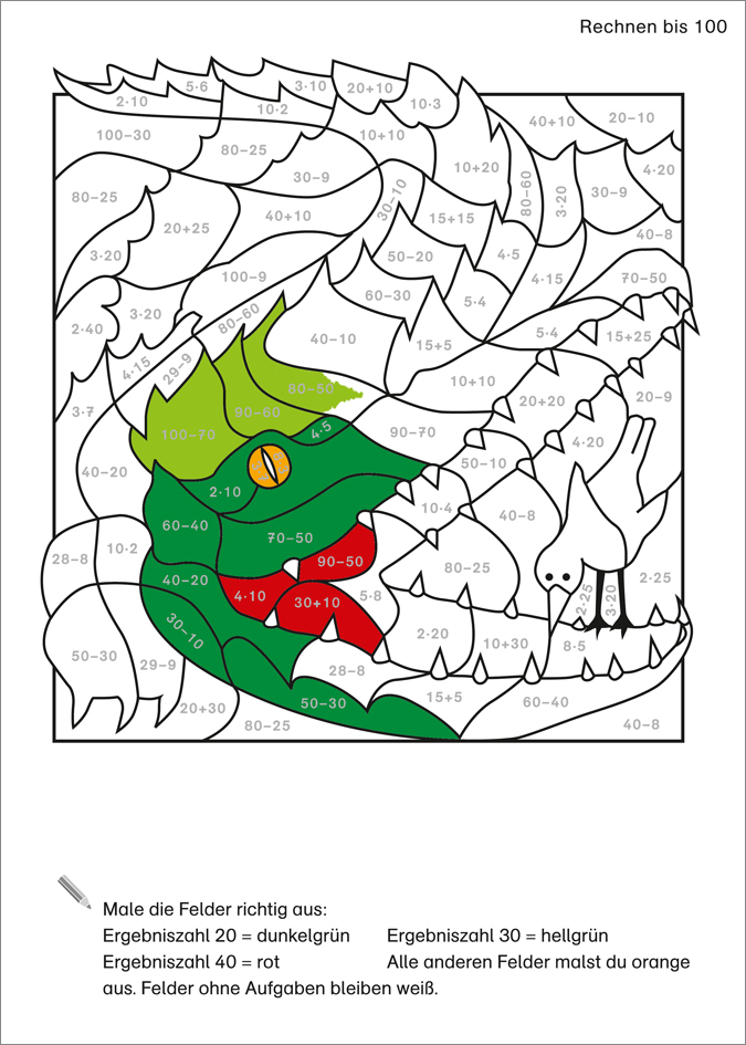 Mathematik und Malen in ungewöhnlicher Kombination! Die 48 Seiten des Malbuchs umfassen 48 Bilder. Jedes besteht aus vielen kleinen Segmenten, die jeweils eine Rechenaufgabe im Zahlenbereich bis 100 enthalten. Geübt werden vor allem das Einmaleins und die Grundrechenarten. Die Ergebniszahl zeigt an, in welcher Farbe das entsprechende Feld auszumalen ist. So entstehen mit Lerneffekt fröhliche bunte Bilder.Die Reihe LERNSTERN lädt zum spielerischen Lernen und Üben ein, spannt den Bogen vom Kindergarten in die Vorschule und Grundschule. Dabei kann unter rund 40 Blöcken und Heften mit verschiedenen Akzenten gewählt werden.