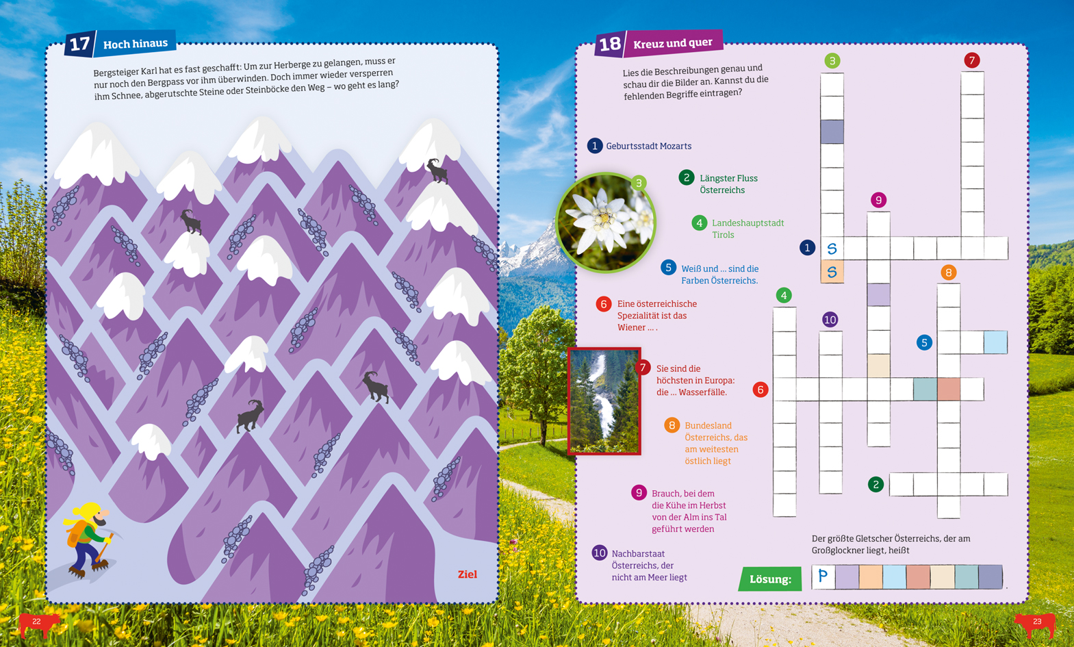 Welche Seen, Berge, Städte und kulinarischen Spezialitäten gibt es in Österreich? Was wissen wir über Geschichte, Kultur und Politik des Landes? Buchstaben- und Logikrätsel, Labyrinthe und Quizfragen, Ratekrimis und viele andere Rätsel veranschaulichen Wissenswertes im Detail. Die Lösungen sind am Ende des Heftes zu finden. Ein Teil der Sticker wird zum Rätseln gebraucht, die anderen sind universell einsetzbar - auch für Brotbox, Schulheft und Co!