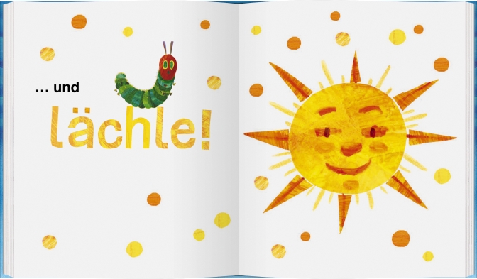 Mit kindgerechten Übungen zur Ruhe kommen - auch dabei hilft die kleine Raupe Nimmersatt in diesem Geschenkbüchlein.