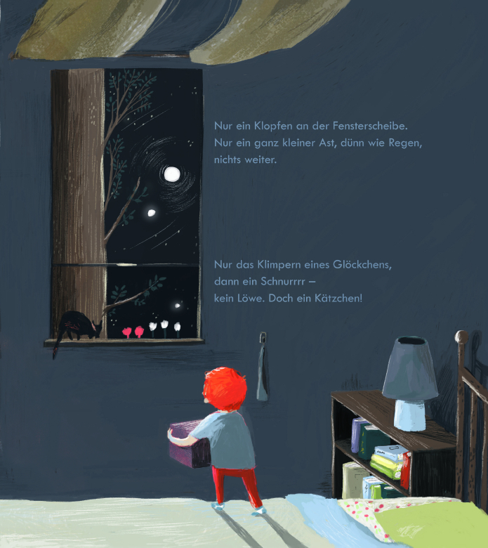 Wohin geht der Tag, wenn er müde ist? Und woher kommt die Nacht? Max weiß es. Er hat einen Schlüssel. Mit einem Klick öffnet er abends die geheimnisvolle blaue Kiste in seinem Zimmer, aus der die Nacht heraussaust, während der Tag hineinschlüpft. Und was für eine wunderbare Nacht das ist! Sie ist freundlich, schelmisch, sanft, riesig, mutig und beschützend, sie tanzt und wirbelt. Sie gibt jedem Ding, jedem Tier, jedem Menschen seinen Platz, sie wacht über alle und hält sie in ihren starken Armen. So kann Max mit seinem Teddy beruhigt in seinem kuscheligen Bett schlafen, bis die Nacht am Morgen dem neuen Tag die Bühne überlässt.Dieses poetische Bilderbuch zeigt die Nacht in einem ganz neuen Licht: als vergnügte, beschützende Freundin.
