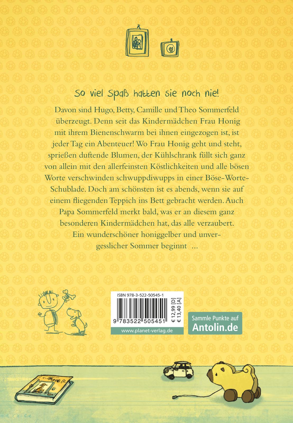 Zauberhaft und magisch – das ist Frau Honig! Wo das Kindermädchen auftaucht, dauert es nicht lange, bis etwas Ungewöhnliches passiert! Auch die Kinder der Familie Sommerfeld staunen nicht schlecht, als von einer Sekunde auf die andere der Kühlschrank mit den feinsten Köstlichkeiten gefüllt ist oder alle bösen Worte schwuppdiwupps in einer Schublade verschwinden. Doch den größten Spaß, den haben sie abends, wenn sie auf einem fliegenden Teppich ins Bett gebracht werden.