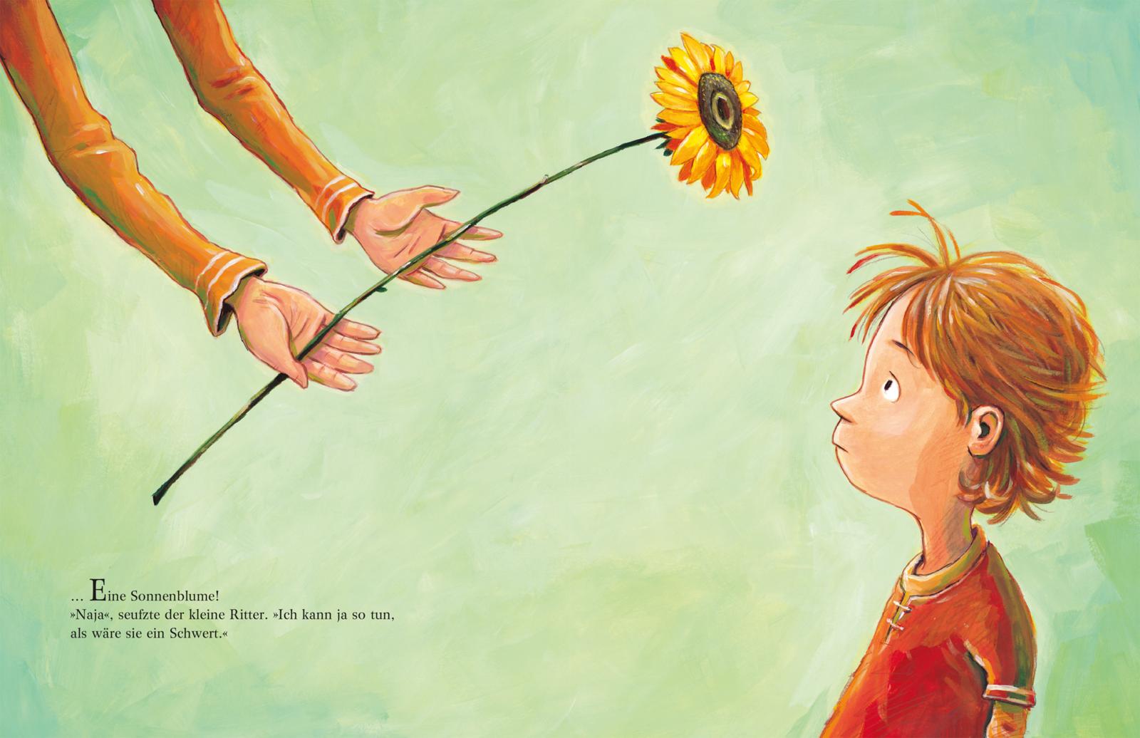 Der kleine Ritter wünscht sich nichts sehnlicher als ein Schwert! Dumm nur, dass seine Mutter das nicht einsehen will. Stattdessen bringt sie ihm ausgerechnet eine Sonnenblume. Als ob er damit gegen Drachen kämpfen könnte! Doch dann stellt der kleine Ritter fest, dass so eine Sonnenblume ganz brauchbar sein kann ...