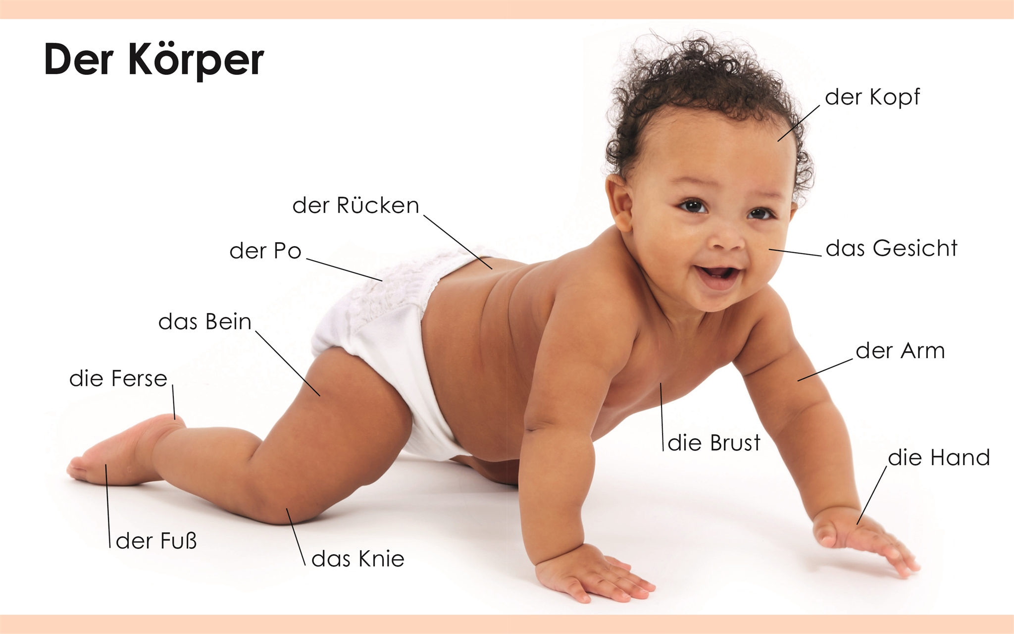 Von Kopf bis Fuß - in diesem kleinen, farbenfrohen Bildwörterbuch werden Körperteile, aber auch Gesichtsausdrücke, die Sinne, Tätigkeiten oder Kleidungsstücke dargestellt. Viele große Farbfotos mit Bezeichnungen laden zum Erkunden, Betrachten und Benennen ein.