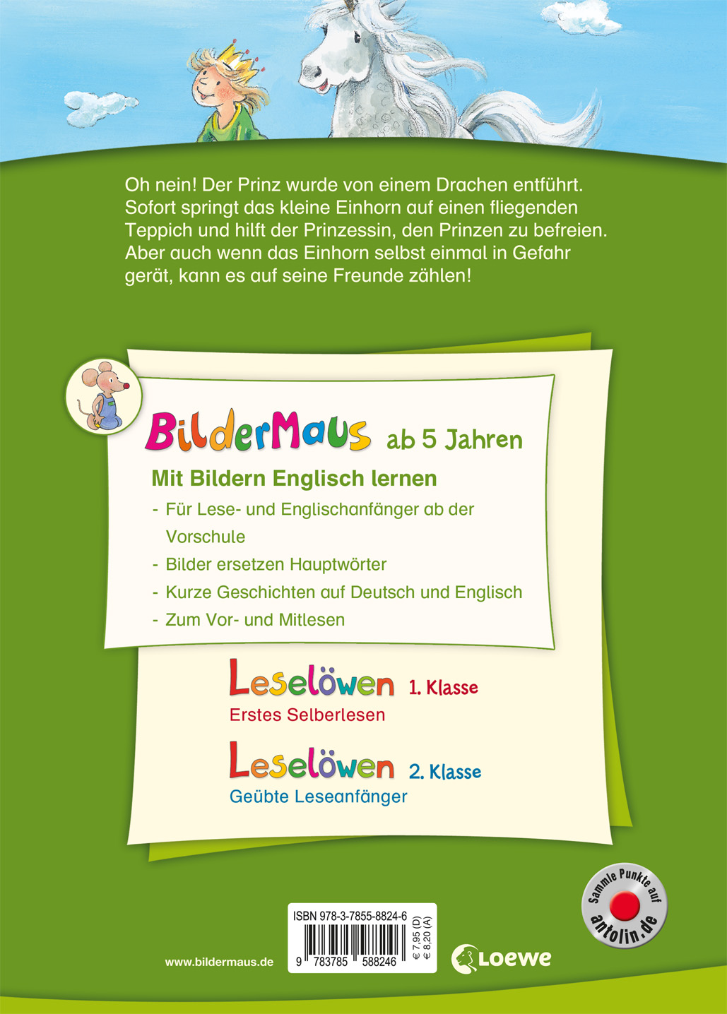 | Schlagworte | Antolin (1. Klasse) • Bild-Wörter • Bücher mit Bildern zum Mitlesen • Domino Karten Spiel Englisch • Einhorn / Einhörner; Kinder-/Jugendliteratur • Einhorn Einhorngeschichten ab 5 Jahre • Einhorn Geschichten ab 5 • Einhorn; Kinder-/Jugendliteratur • Englisch • Englisch Bücher für Kinder ab 5 • Englisch Kindergarten Kinderbuch • Englisch Kindergarten Vorschule • Englisch; Kinder-/Jugendliteratur • englisch lernen für Kinder ab 5 jahre • Englisch lernen Kinder • englisch Spiele für Kinder • Englisch üben Vokabeln Grammatik • englisch Vokabeln Vorschule • Erstlesebuch • Erstleser • Frühe Kindheit: Buchstaben & Wörter • Frühe Kindheit: Buchstaben & Wörter • Geschenk für Mädchen ab 5 • Kinderbuch Kinderbücher für Kinder ab 5 Jahre • Lesemaus Bildermaus Englisch • Lesen mit Bildern • Mädchen Mädchengeschichte Mädchenbuch • Sprache lernen Neue Sprache Zweitsprache ab 5 • Vorlesen Vorlesebuchfür Kinder • Vorschule Spiele Übungen • Vorschule Übungen englisch |