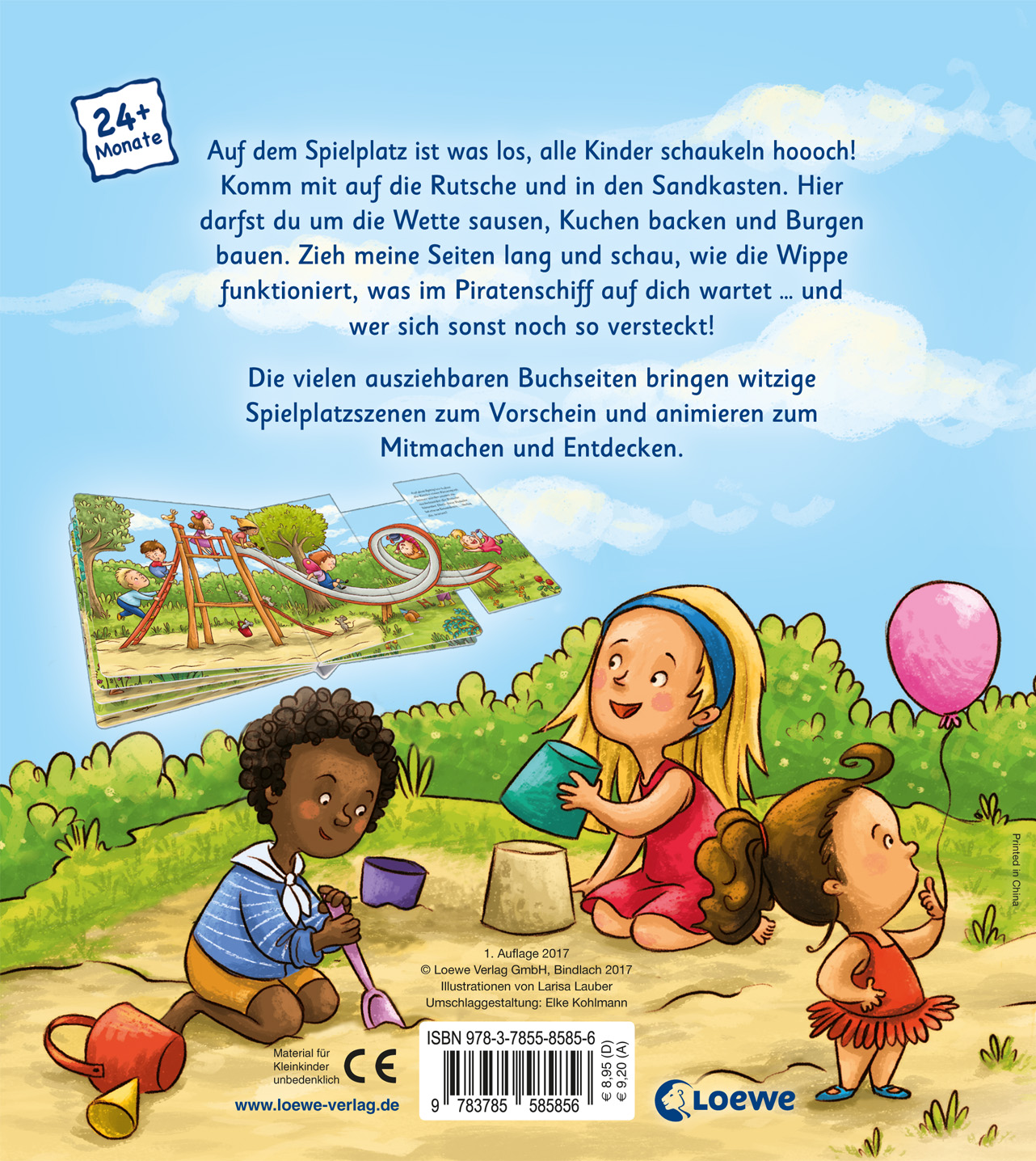 | Schlagworte | Abenteuer Spielplatz • Antolin (1. Klasse) • Ausklapp-Bilderbuch/Bewegungsbilderbuch • Bilderbuch ab 2 Jahre • Bilderbuch Klappen Schieber Extras • Förderung Motorik Kleinkind • Frühe Kindheit: erste Erfahrungen • Geschenk Kleinkinder • Kinder bis 3 • kinderbücher ab 2 jahre • Kleinkind Buch Beschäftigung • Papp-Bilderbuch • Pappbilderbuch Spielen • Rutsche Schaukel Wippe • Spielplatz; Bilderbuch • Spielplatz Spielgerät Sandkasten |