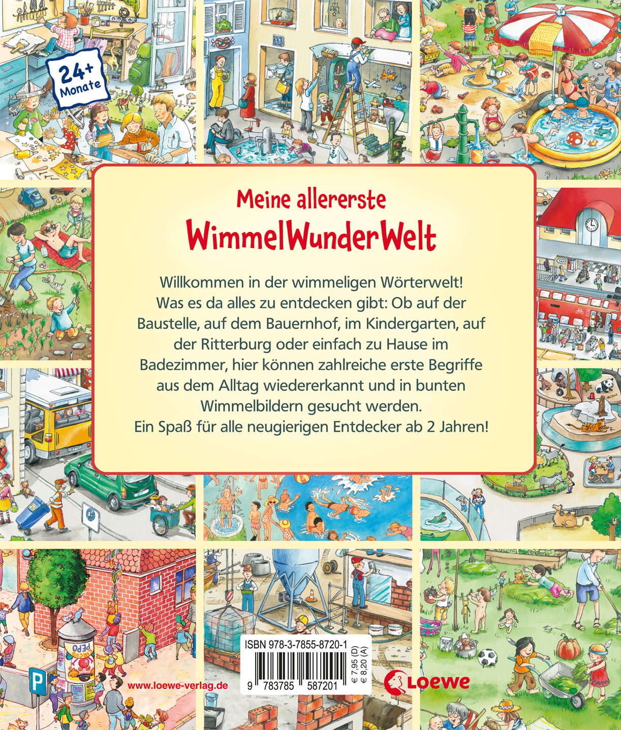 Willkommen in der wimmeligen Wörterwelt! Was es da alles zu entdecken gibt: Ob auf der Baustelle, auf dem Bauernhof, im Kindergarten, auf der Ritterburg oder einfach zu Hause im Badezimmer, hier können zahlreiche erste Begriffe aus dem Alltag wiedererkannt und in bunten Wimmelbildern gesucht werden. Ein Spaß für alle neugierigen Entdecker!