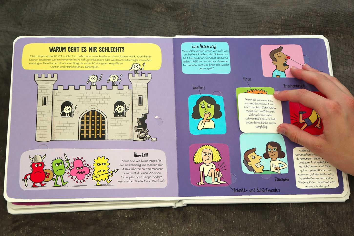 Achtung, an alle kleinen Entdecker: Erkunde den menschlichen Körper! Finde heraus, was unter der Haut passiert. Öffne die Klappen und schau nach, wie das Gehirn arbeitet, wie Babys wachsen und was dich am Leben hält. Es gibt so viel zu entdecken ...