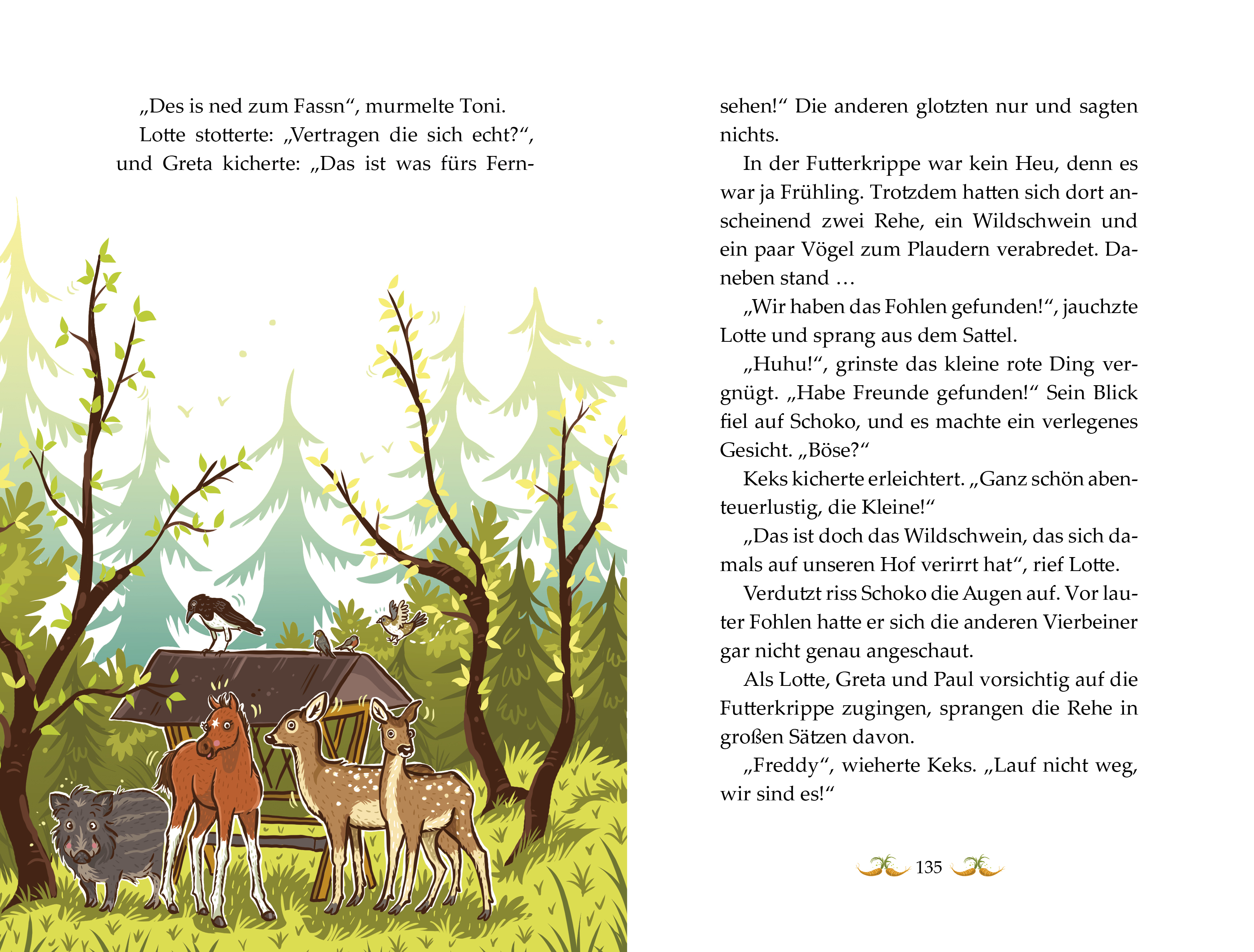 Endlich wird das Fohlen der Gräfin geboren - und der Blümchenhof steht Kopf! Nur Schoko hat gar keine Lust, sich dem Bewunderungstrupp anzuschließen. Denn plötzlich müssen sie ewig auf ihr Frühstücksheu warten, sein bester Freund Keks spielt sich als Fohlenchefkümmerer auf und auch sein Lieblingszweibeiner Lotte hat nur noch Augen für das staksige kleine Ding. Dabei ist so ein Fohlen nur langweilig und nichts Besonderes, oder?