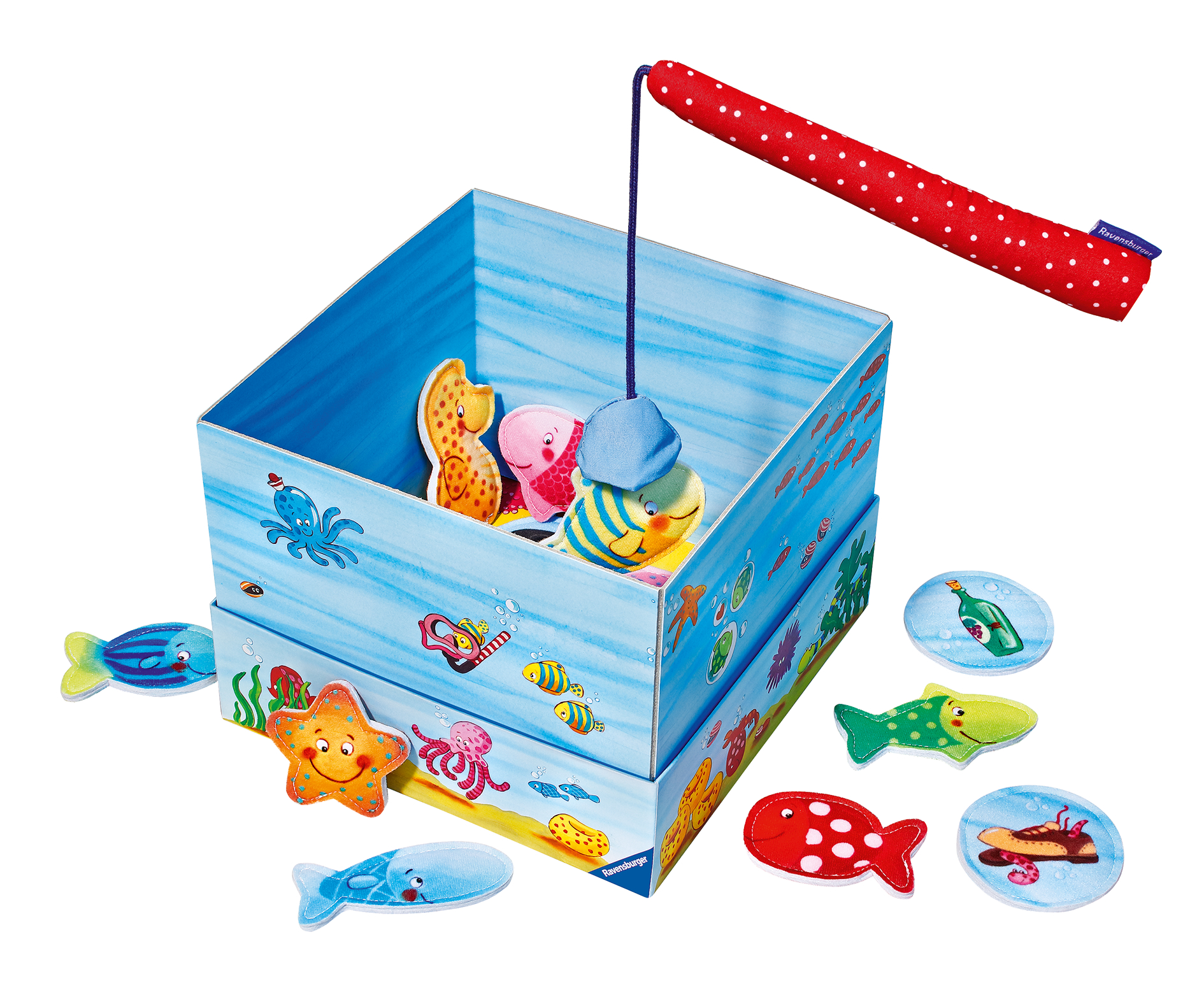 Allererstes Geschicklichkeitsspiel für die Kleinen - Mit 12 Fischen und Gegenständen aus flauschigem Stoff - Weiche Stoff-Angel mit Klett-Haken - Großes, stabiles Aquarium: ca. 22 x 22 x 16 cm Wer angelt die meisten Fische? Mit der weichen Stoff-Angel und dem Klett-Haken lassen sich die flauschigen Unterwasserbewohner spielend leicht aus dem Aquarium fischen - Erfolgserlebnisse garantiert! Spielerisch werden so Feinmotorik, Konzentration und Sprachentwicklung gefördert und ein erstes Regelverständnis entwickelt. Eine Vielzahl an Spielvarianten sorgt zudem für jede Menge Abwechslung. Spieleranzahl: 2-4. Spieleanleitung in deutsch.