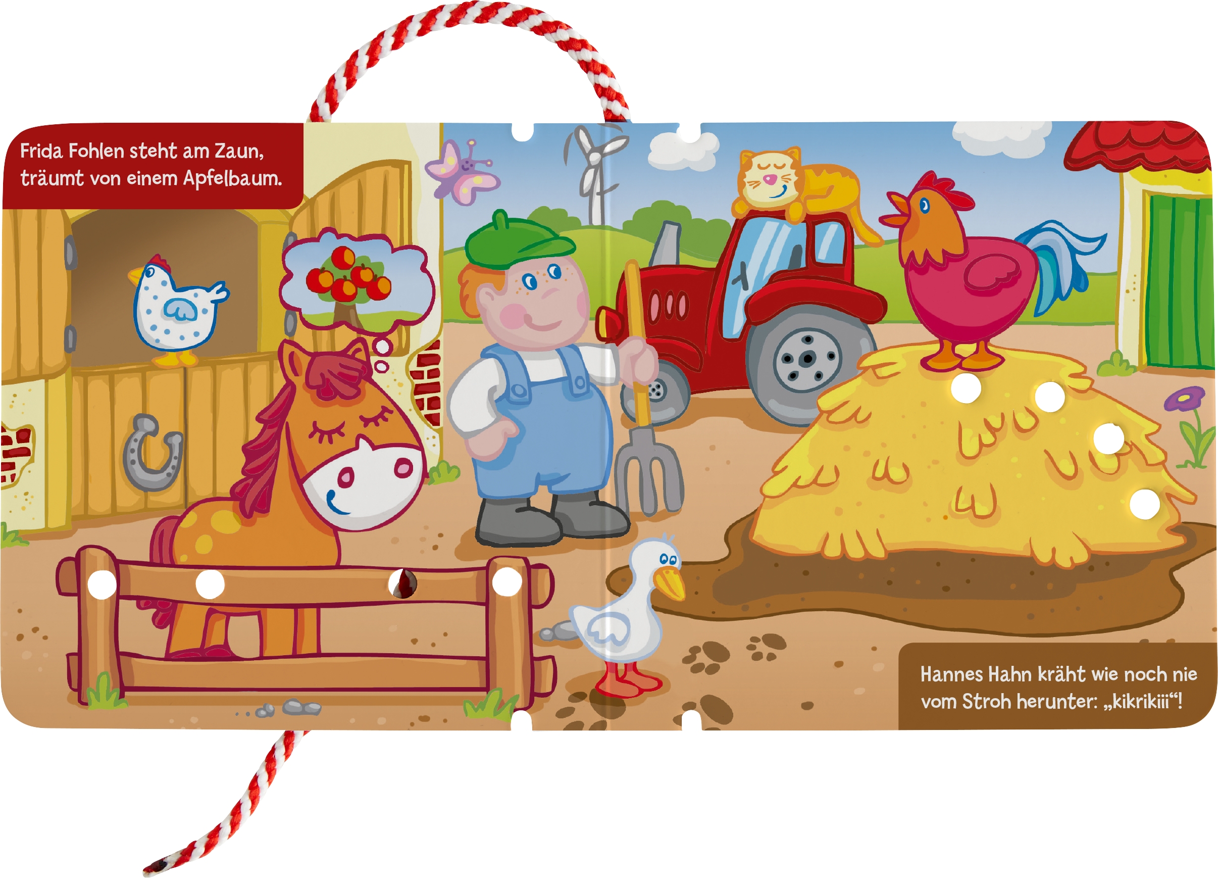 | Schlagworte | Bauernhof; Sachbilderbuch • Fädeln • Fadenspiele • Kuh • Papp-Bilderbuch • Traktor |