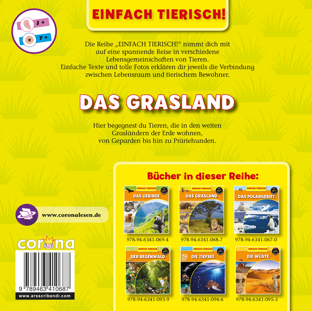 Die Reihe „EINFACH TIERISCH!“ nimmt dich mit auf eine spannende Reise in verschiedene Lebensgemeinschaften von Tieren. Einfache Texte und tolle Fotos erklären dir jeweils die Verbindung zwischen Lebensraum und tierischem Bewohner. Hier begegnest du Tieren, die in den weiten Grasländern der Erde wohnen, von Geparden bis hin zu Präriehunden.