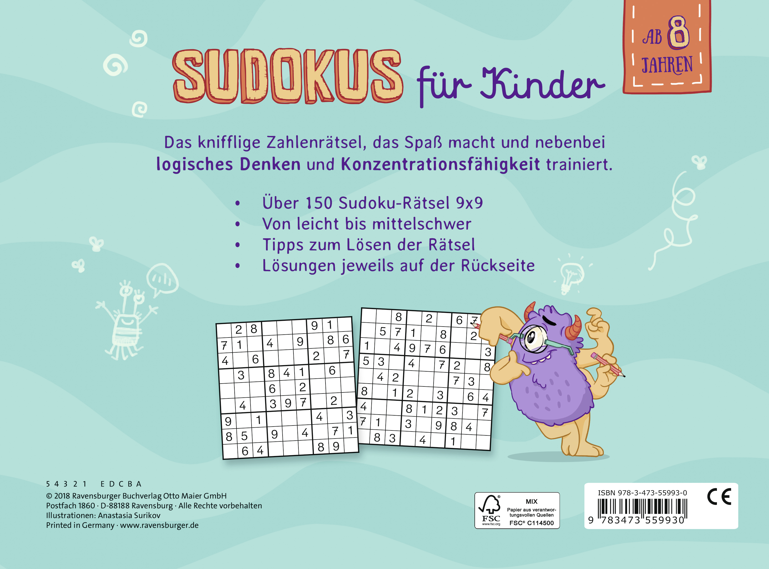 Der Block enthält über 150 Sudoku-Rätsel von leicht bis mittelschwer und zahlreiche Tipps zum Lösen der Rätsel. Ganz nebenbei werden dabei logisches Denken und Konzentrationsfähigkeit trainiert.