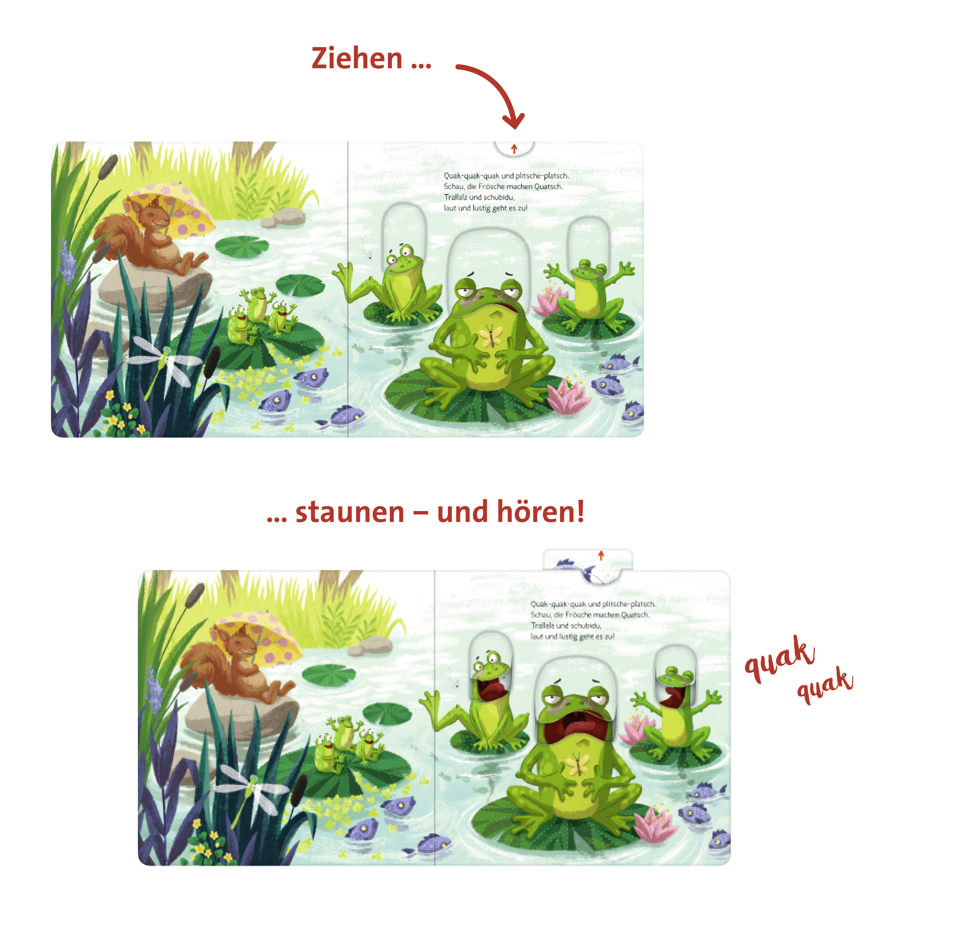 Dieses faszinierende Spielbuch ist innovativ und nachhaltig zugleich, denn es macht immer wieder Spaß und braucht keinerlei Batterien. In diesem Buch entstehen die Geräusche allein durch Papiertechnik und Reibung. Durch das Bewegen der Schieber wird das Geräusch selbst gemacht und durch die Art der Bewegung kann der Laut verändert werden: Schnelles Ziehen am Schieber produziert ein anderes Geräusch als langsames Bewegen.