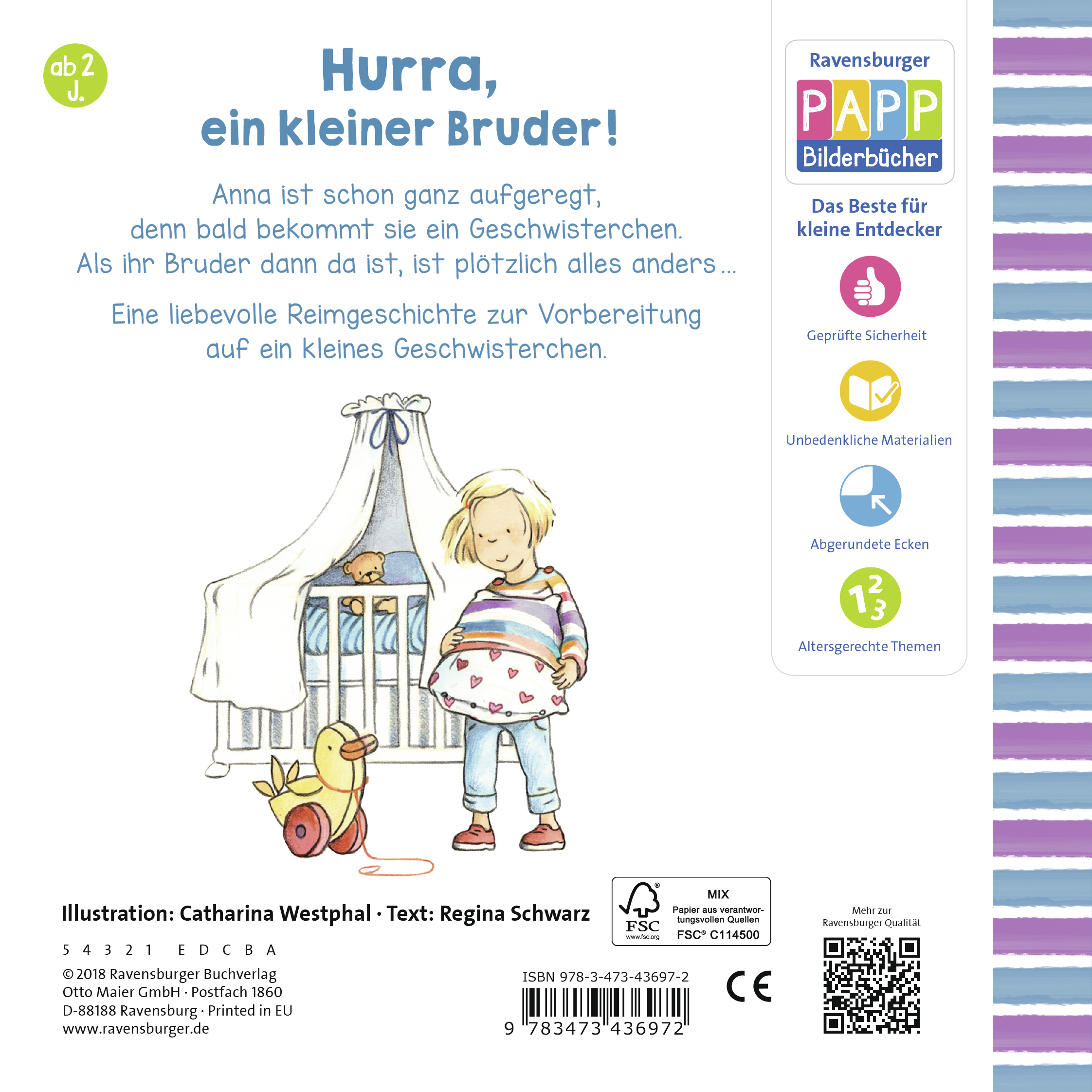 Anna bekommt bald ein Geschwisterchen und freut sich schon sehr darauf. Doch mit kleinem Bruder verändert sich vieles. Zum Glück sind Mama und Papa für beide da. Eine liebevolle Reimgeschichte die kindgerecht auf den Nachwuchs vorbereitet.