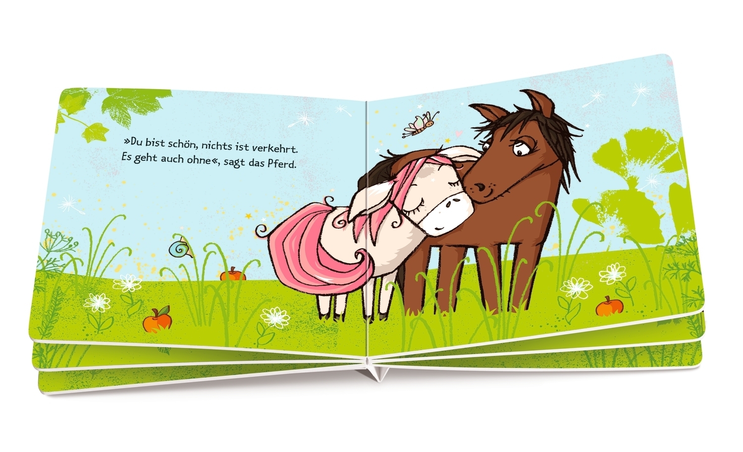 Das kleine Einhorn ist verzweifelt: Sein Horn will einfach nicht wachsen! Die Ziege bietet an, ihm eins auszuleihen. Das Nashorn beruhigt, dass seins auch sehr lange gebraucht hat. Das Pferd tröstet mit einem Kuss. Und plötzlich kribbelt es auf der Stirn. Zauberhafte (K)Einhorn-Geschichte voller Wärme, Witz und ganz ohne Kitsch.
