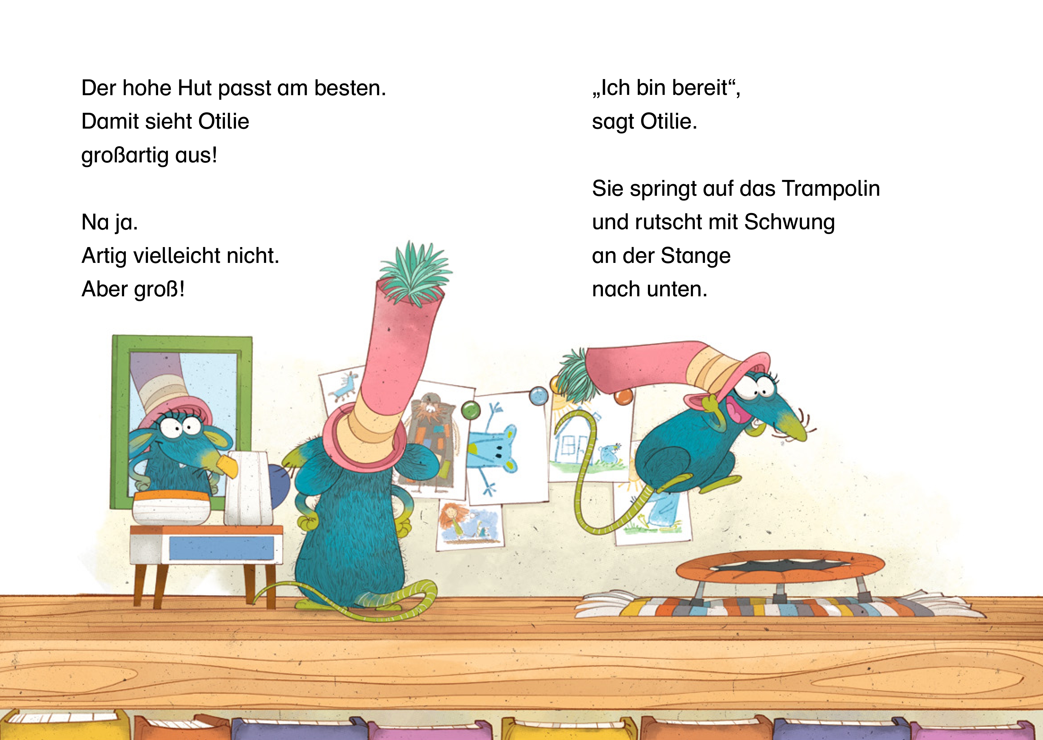 Leseratten-Abenteuer zum Mitmachen! Otilie ist schon ganz aufgeregt: Für heute hat sich die erste Klasse der Grundschule in der Buchhandlung von Frau Rübezahl angekündigt. Kaum hat die Leseratte sich ihren Hut aufgesetzt, da klingelt auch schon die Glocke über der Tür: Der Besuch ist da! Otilie legt sich mächtig ins Zeug und zeigt den Kindern ihre bunte Welt der Bücher, mit allem, was in Büchern so versteckt sein kann. Gemeinsam lösen sie sogar das eine oder andere knifflige Rätsel. Ein liebevoll und modern illustrierter Besuch in Otilies bunter Bücherwelt, mit vielen Reimen und Rätselspaß.