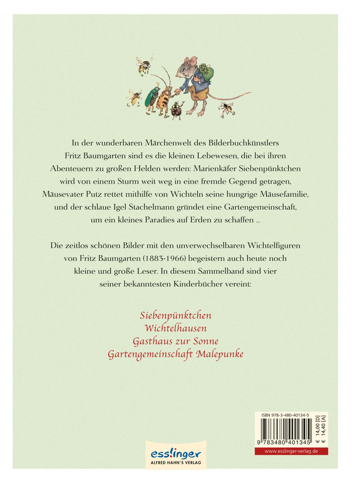 Seine pausbäckigen Wichtel sind unverwechselbar, seine Bücher und Ansichtskarten unter Sammlern begehrt: Mit über 500 Titeln war Fritz Baumgarten einer der produktivsten und beliebtesten Kinderbuch-Illustratoren des 20. Jahrhunderts. In diesem Sammelband sind vier seiner bekanntesten Werke vereint: "Siebenpünktchen", "Wichtelhausen", "Gasthaus zur Sonne" und "Gartengemeinschaft Malepunke".