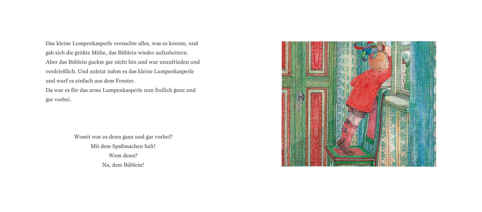 Armes kleines Lumpenkasperle! Kurzerhand wird es von seinem Spielgefährten, einem kleinen Jungen, aussortiert. So beginnt für das Lumpenkasperle eine abenteuerliche Reise, die es zu guter Letzt und auf wundersame Weise wieder zurück zu seinem Freund führt, der es inzwischen schon schmerzlich vermisst hat.