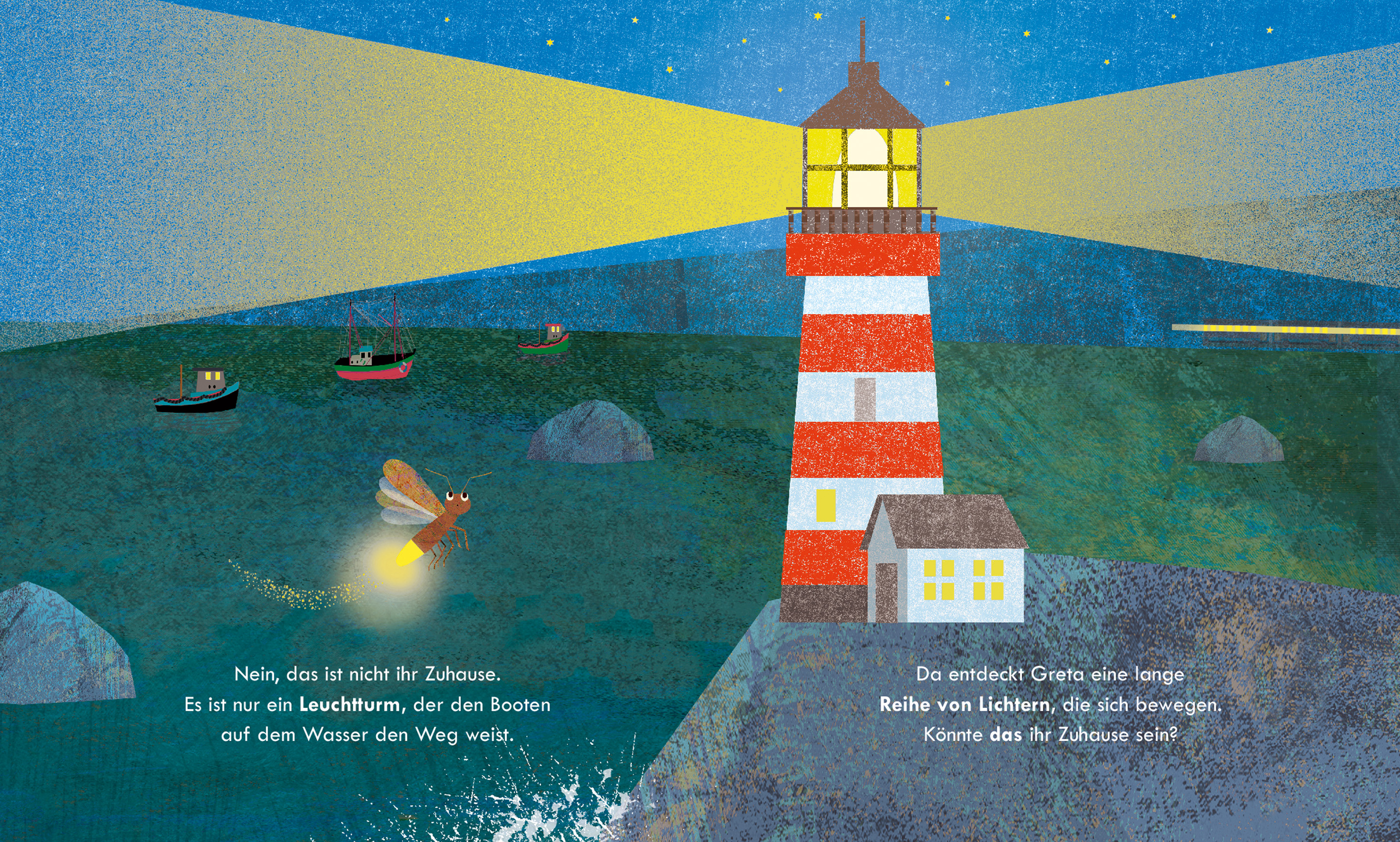 Eine Mutmachgeschichte über das Verlorengehen und Heimfinden O Schreck! Greta Glühwürmchen hat sich verirrt. Wo sind nur all ihre Freunde? Bei Nacht sind sie schwer zu finden. Überall strahlen Lichter und erst beim Näherkommen sieht Greta: Das sind gar nicht die anderen Glühwürmchen! Doch zum Glück gibt es die Leser: Mit deren Hilfe findet Greta den Weg nach Hause. Neon-Sonderfarbe auf dem Umschlag und im kompletten Innenteil