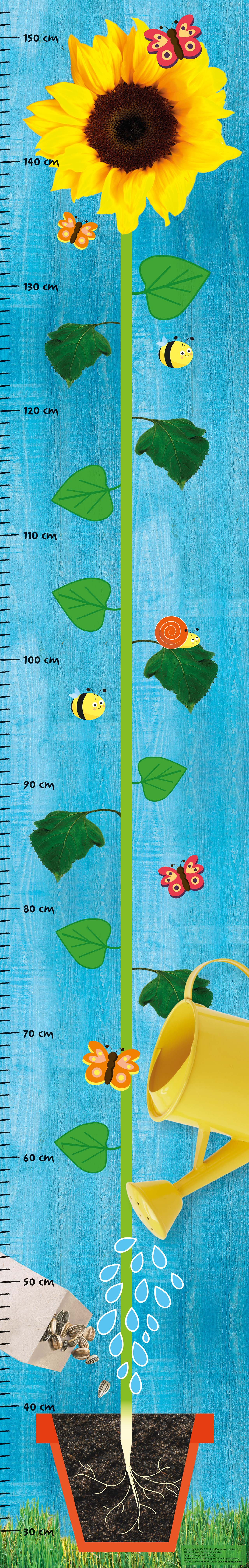 Natürlich möchten Kinder nicht nur den Blumen beim Wachsen zuschauen. Mindestens genauso spannend ist es, wenn die Erwachsenen nachmessen, ob sie selbst schon größer geworden sind. Deshalb wird der Nachwuchs an dem Pflanzenbuch und auch an der Messlatte mit dem riesigen Sonnenblumen-Motiv viel Freude haben. Jeder neue Zentimeter macht mächtig stolz!