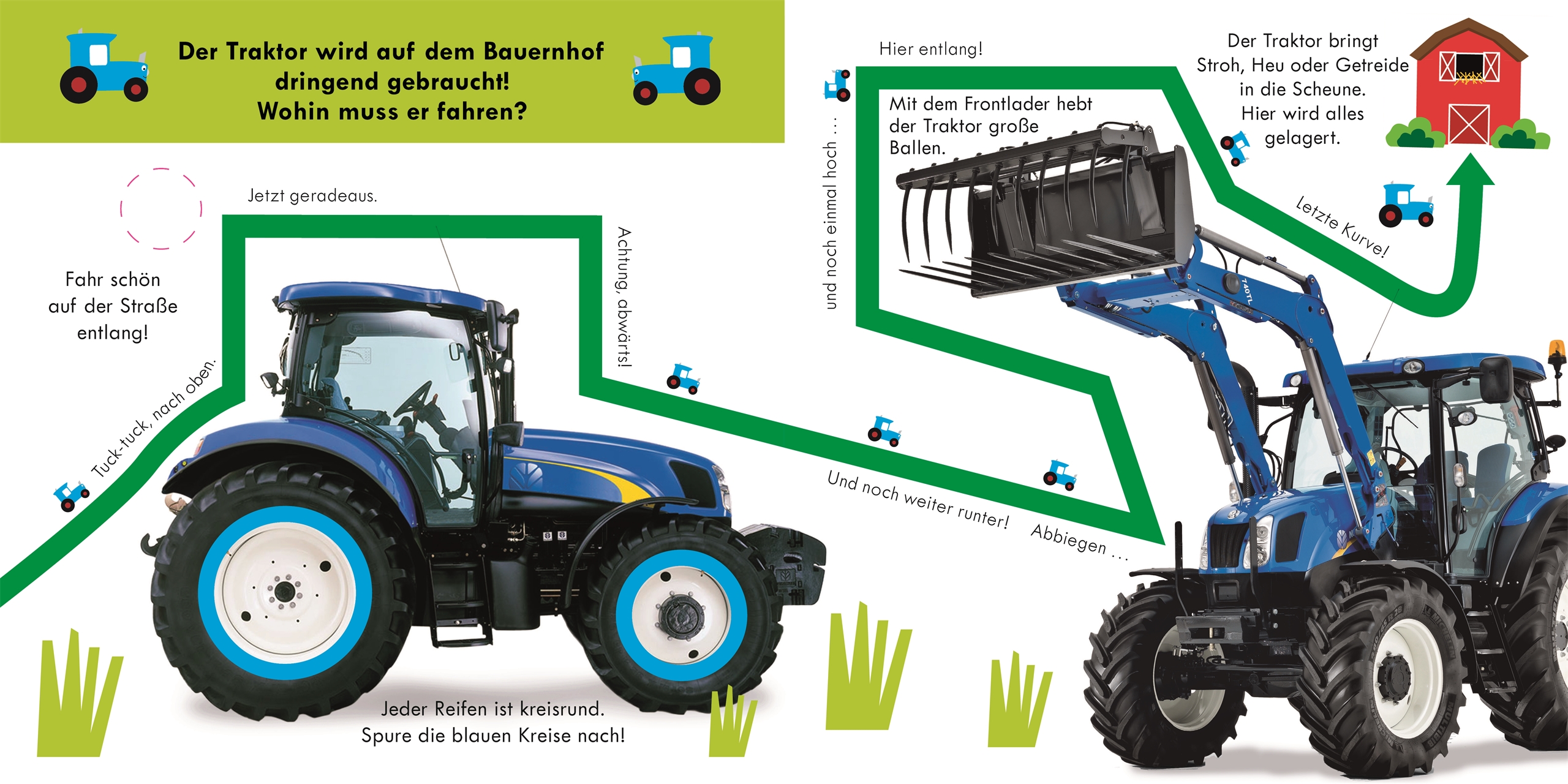 Der Traktor wird auf seinem Weg zur Scheune verfolgt, die Hühner in ihren Stall oder die Kühe auf ihre Weide begleitet. Seite für Seite gehen die Kleinen auf Entdeckungstour, während die Erwachsenen dem Nachwuchs charmante Texte vorlesen. Schauen, Fühlen und Zuhören - das Lieblingsthema Bauernhof wird in diesem Bilderbuch mit allen Sinnen erforscht.