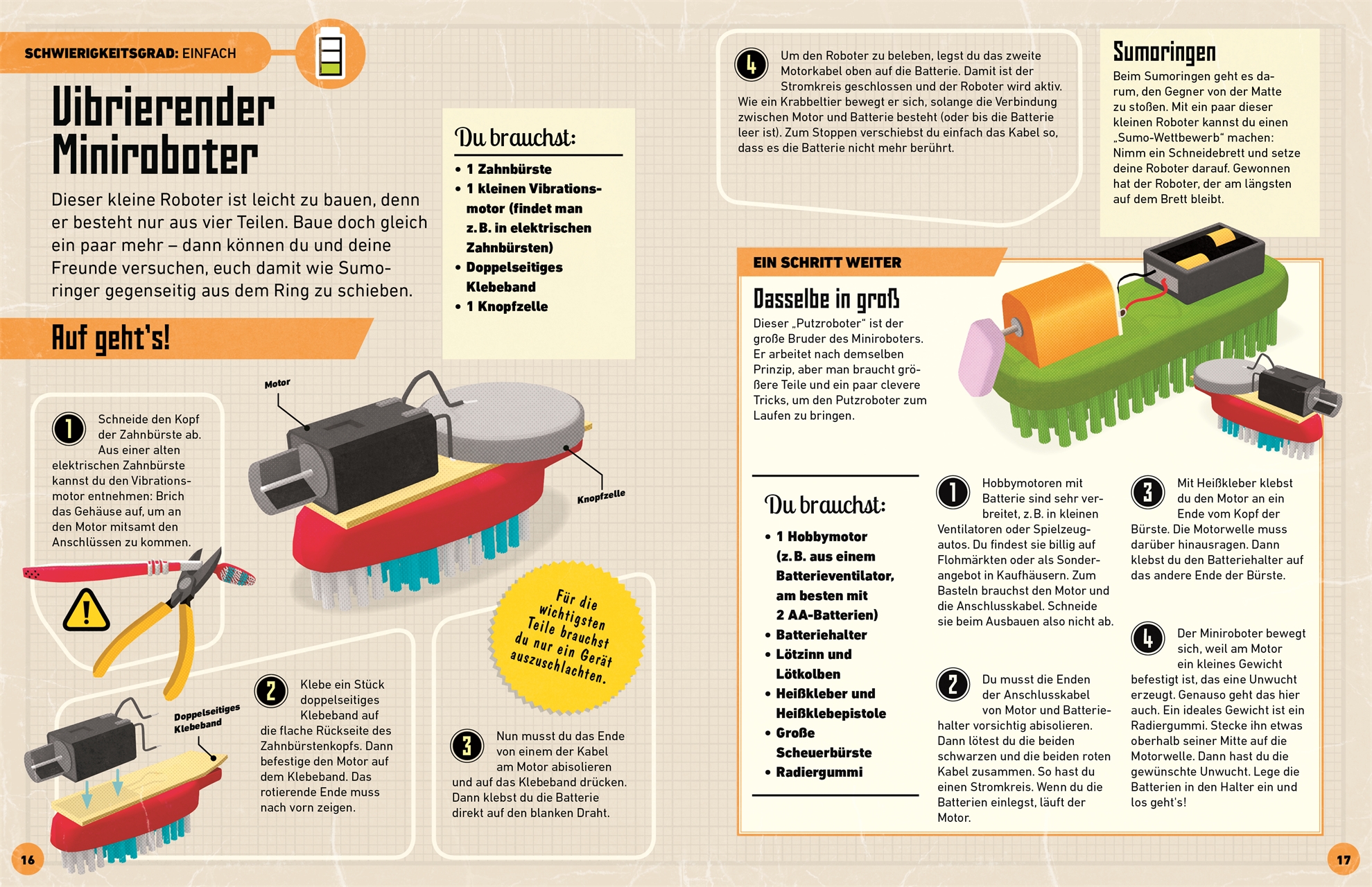 Batteriebetriebenes Rennauto, Kletterroboter, LED-Pantoffeln oder leuchtendes Lesezeichen - mit den abwechslungsreichen und ausgefallenen Erfindungen aus diesem Bastelbuch kann kein Elektrobaukasten mithalten. Darüber hinaus gibt's zahlreiche Projekterweiterungen. Und sollte irgendetwas mal nicht auf Anhieb funktionieren, hilft die Rubrik "Bei Problemen" sofort weiter. Hier wird jeder zum Daniel Düsentrieb!