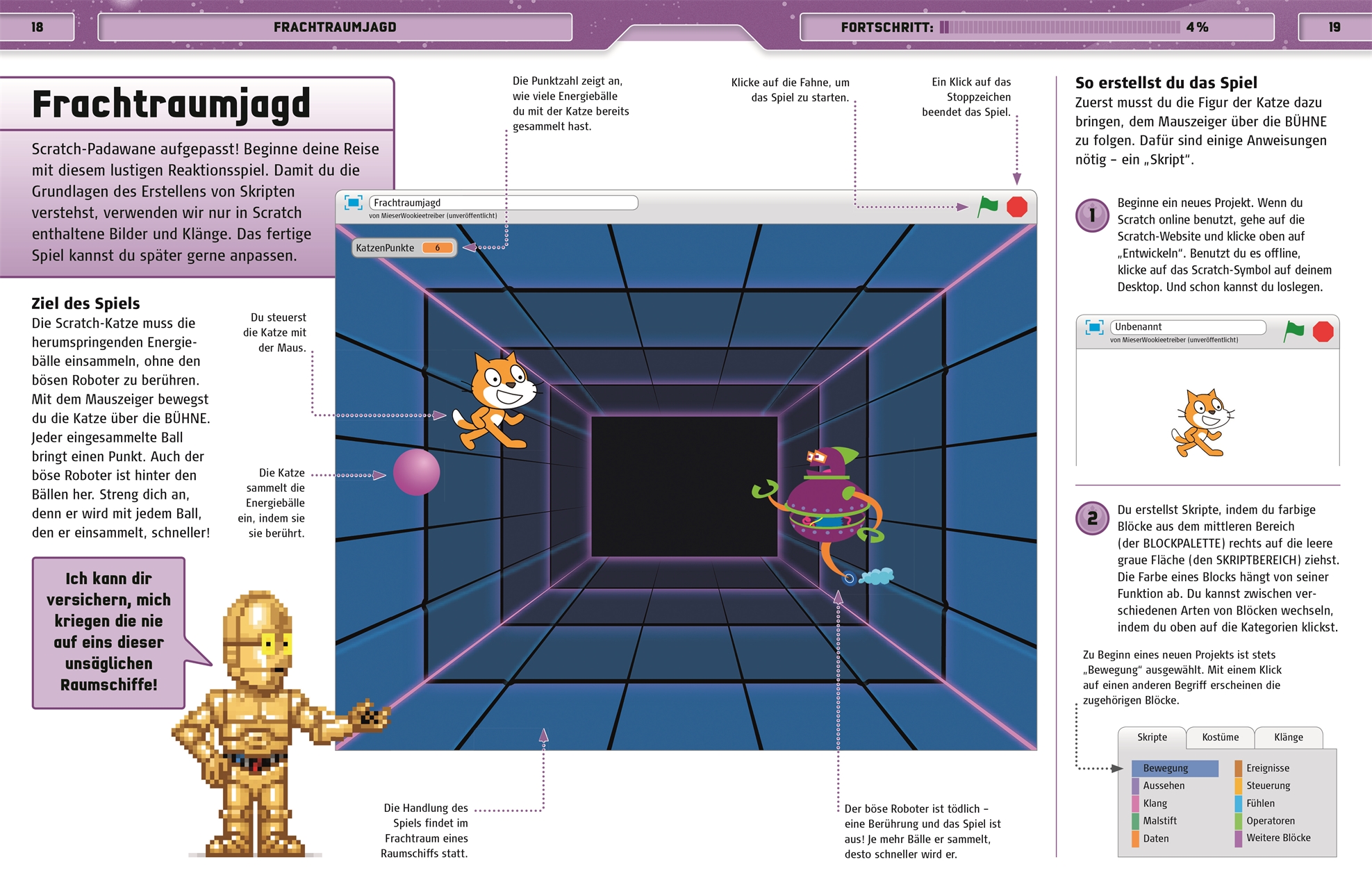 Dank der leicht verständlichen Programmiersprache SCRATCH™ geht’s mit dem Star Wars™ Buch Klick für Klick im Turbotempo zum Erfolg.