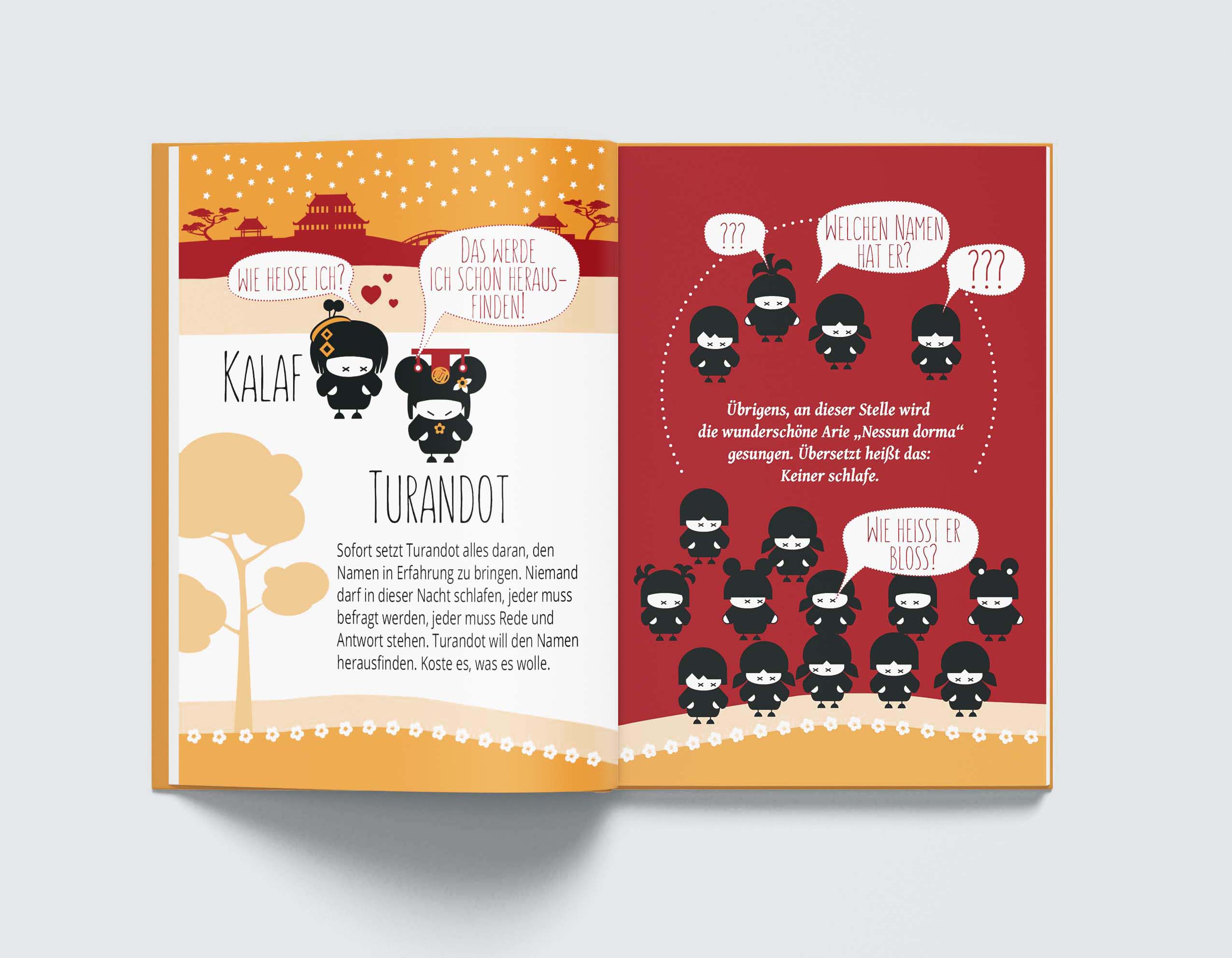 Prinzessin Turandot, so schön wie grausam, wird von Männern heiß begehrt. Doch will sie sich nur dem hingeben, der ihre drei Rätsel löst. Auf Scheitern aber steht der Tod. Viele haben es gewagt, alle mussten sterben. Trotzdem will es auch Kalaf unbedingt versuchen ...KLEINE Bücher im A6-Format machen Lust auf GROSSE Oper. Durchgängig illustriert und mit wenig Text wird der Inhalt der Oper auf nur 64 Seiten verständlich für Jedermann (EINSTEIGER). Mehr Infos: opernmouth[Punkt]com. 2018 wurde die Buchreihe beim Sächsischen Staatspreis für Design in der Kategorie Kommunikationsdesign nominiert.