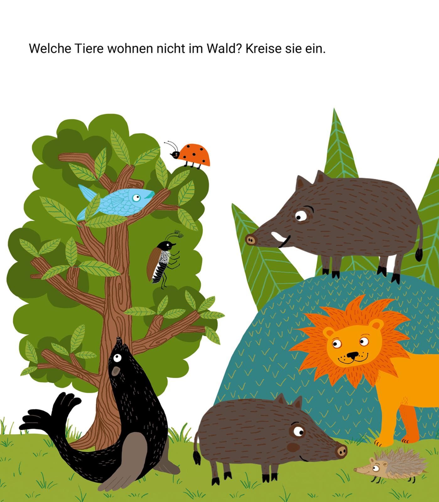 Im Wald gibt es viel zu entdecken! Bunte Suchbilder, Zuordnungsaufgaben, Labyrinthe und Ausmalrätsel rund um den Wald und seine Tiere warten auf euch. Nehmt eure Stifte zur Hand und rätselt los.